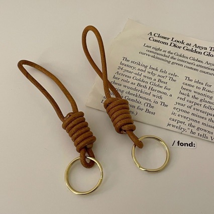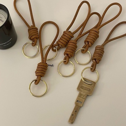 3mm原色の牛革紐のキーホルダーはシンプルです。