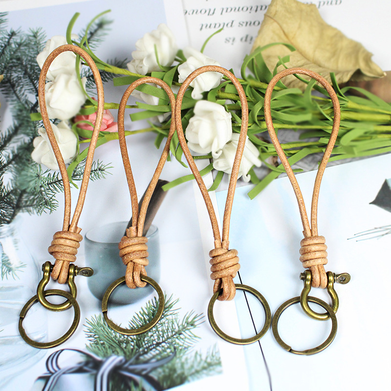 高级感手作り革キーホルダーレトロ牛革ロープバッグストラップ忘れ物防止キーホルダー店お祝いプレゼント