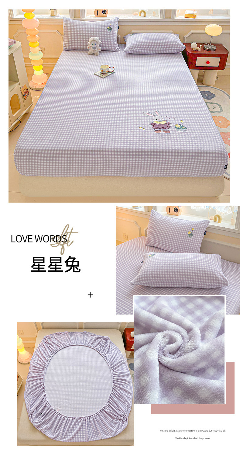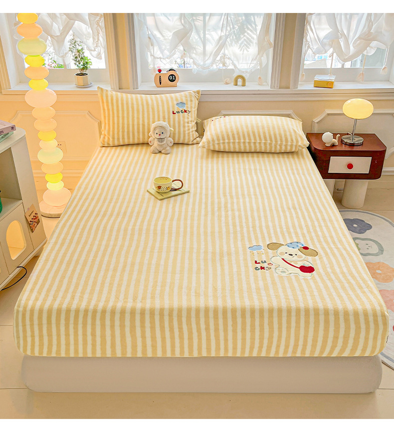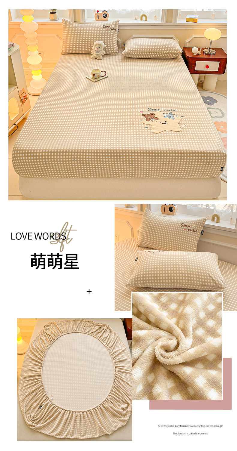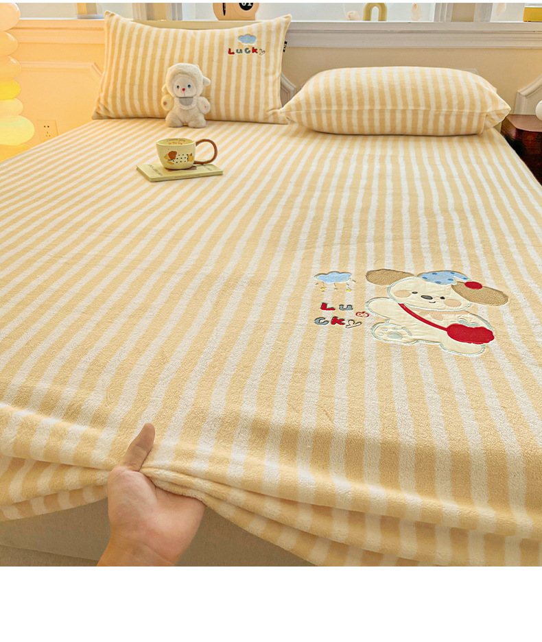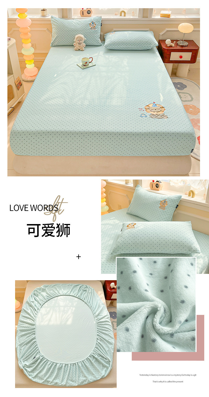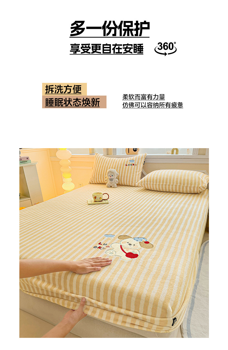 a类牛奶绒冬季床笠单件卡通毛巾绣加绒床罩三件套床垫保护罩全包