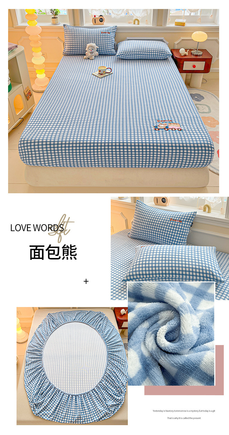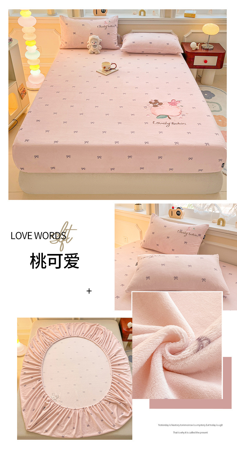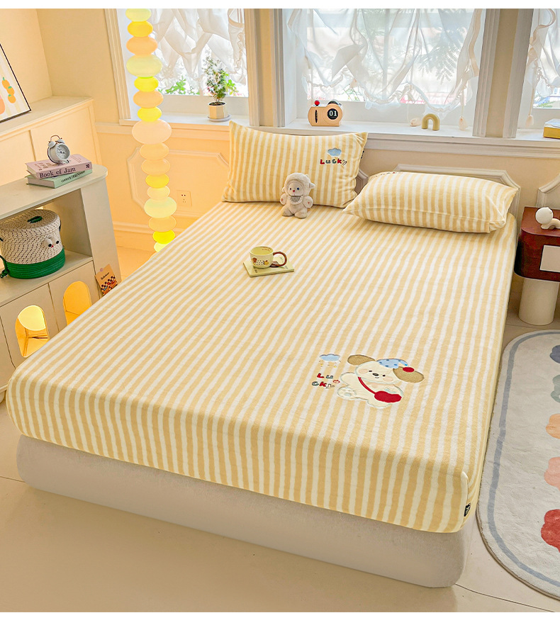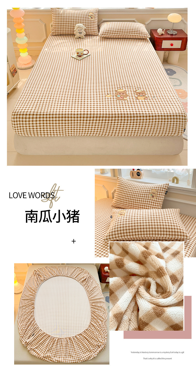 a类牛奶绒冬季床笠单件卡通毛巾绣加绒床罩三件套床垫保护罩全包