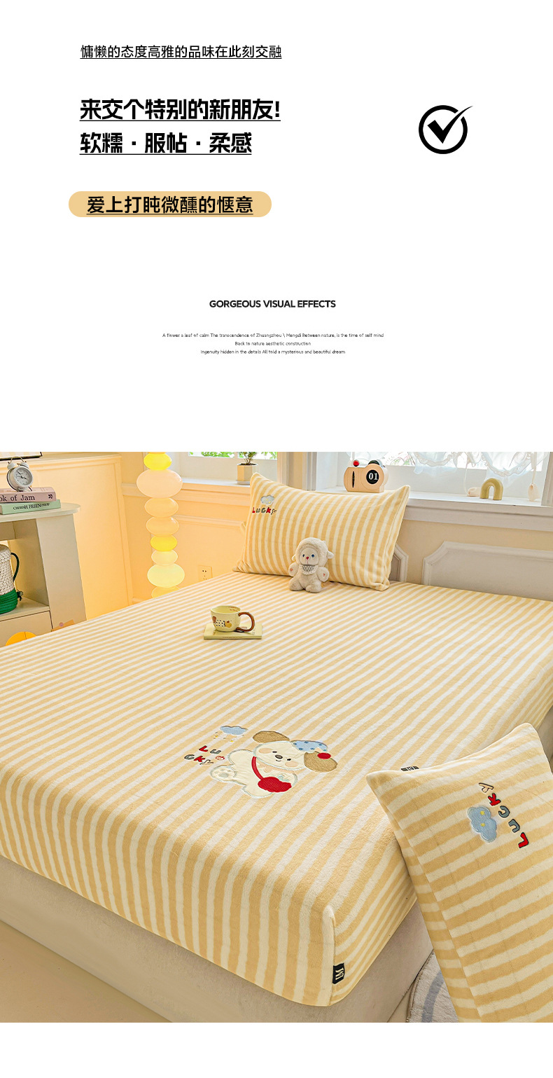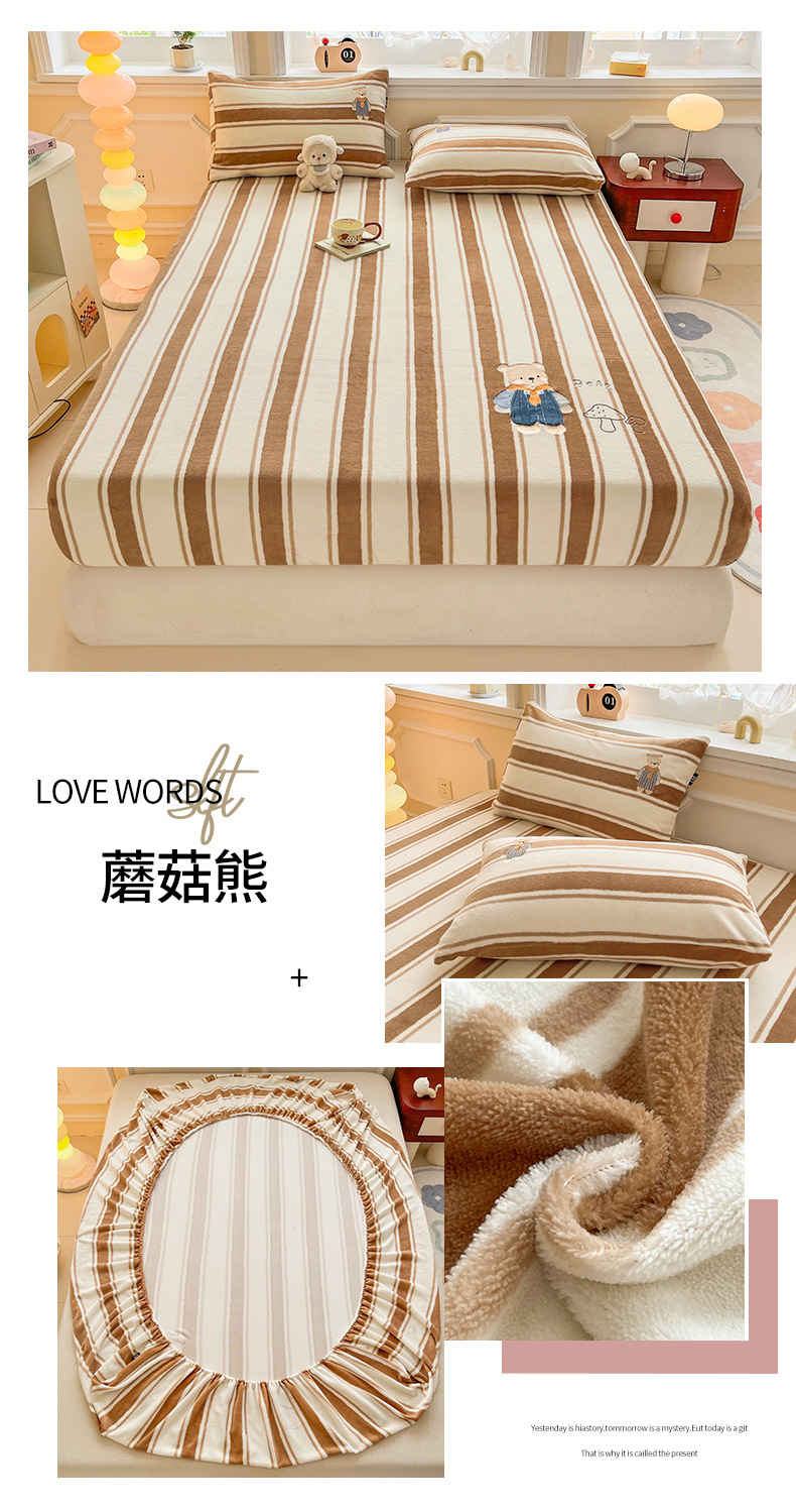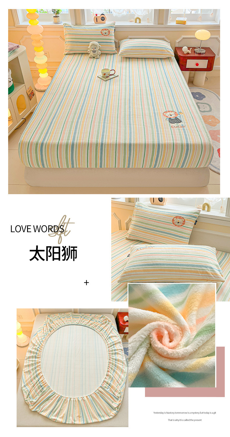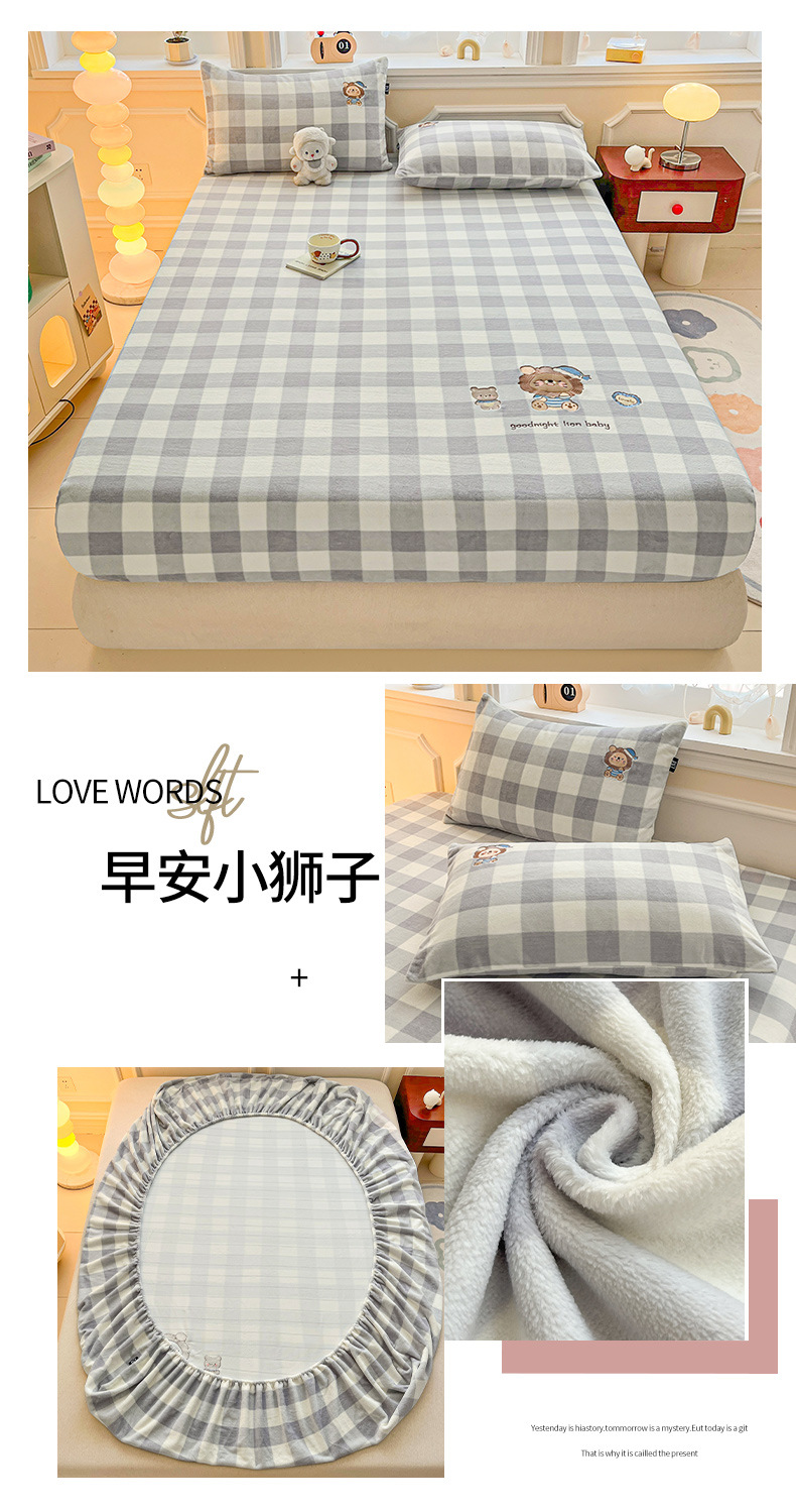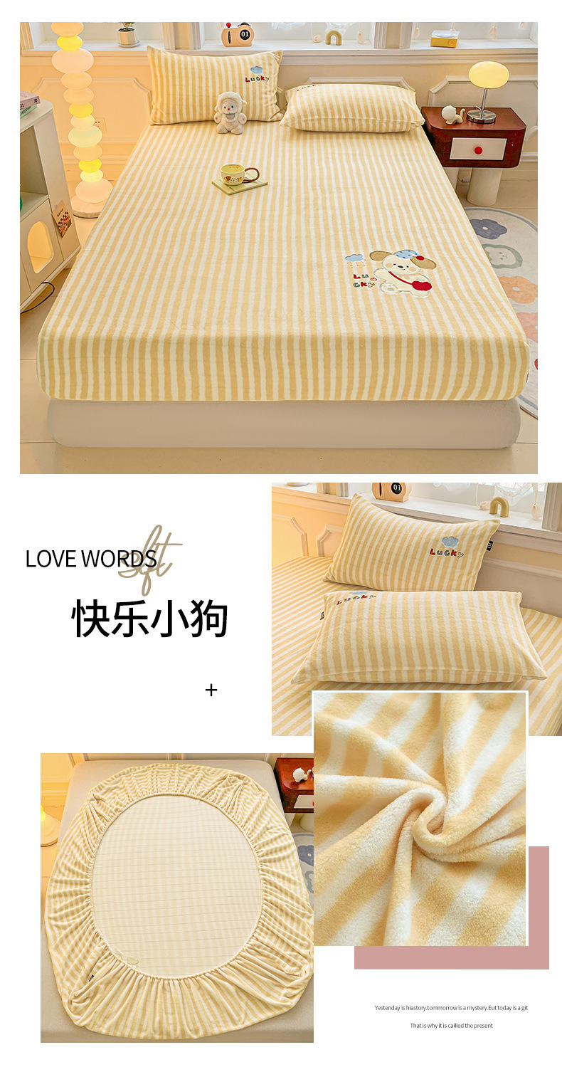 a类牛奶绒冬季床笠单件卡通毛巾绣加绒床罩三件套床垫保护罩全包