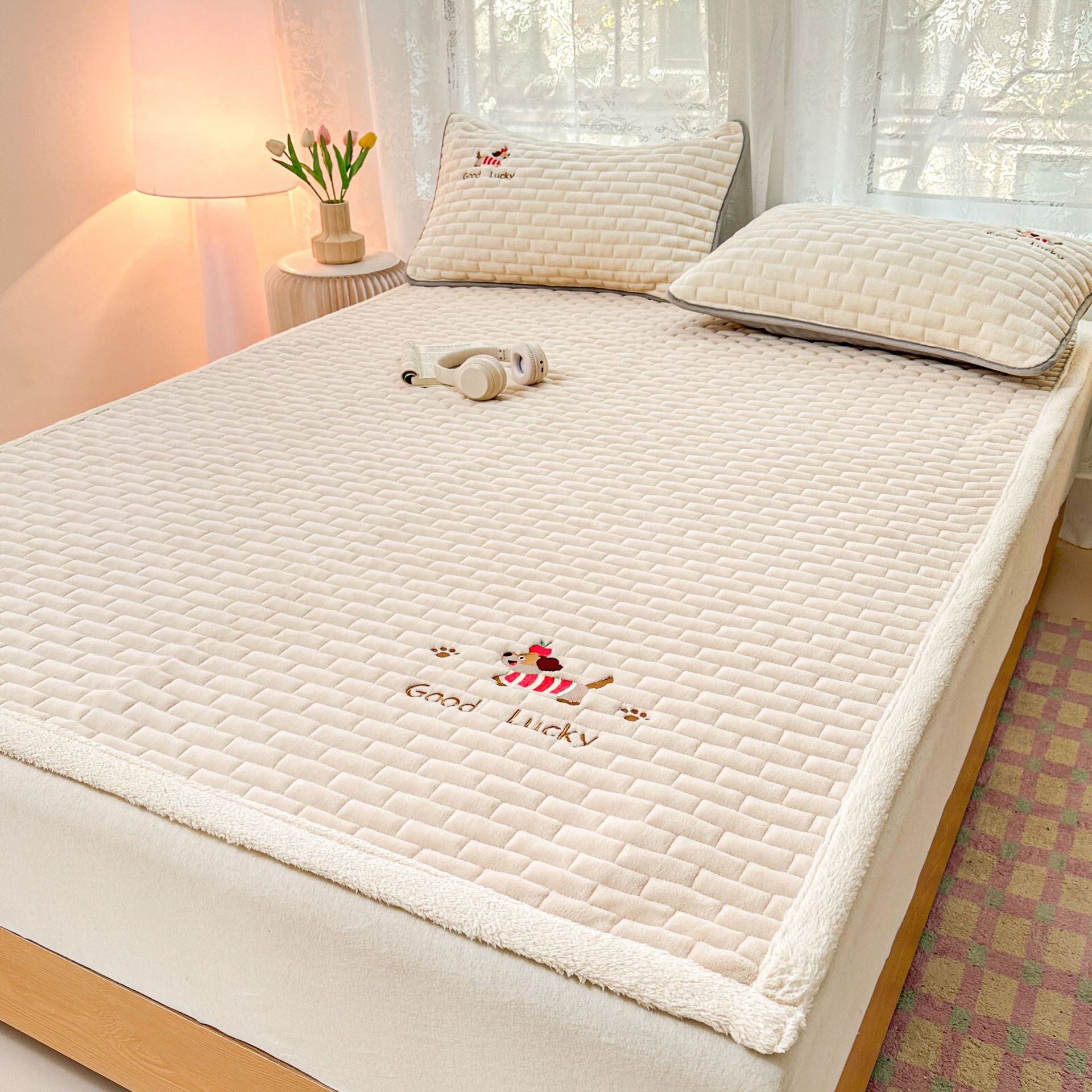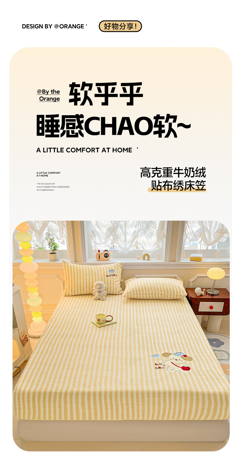 A类牛奶绒单床笠刺绣贴布绣加厚防滑防尘床罩家用卧室床垫保护套