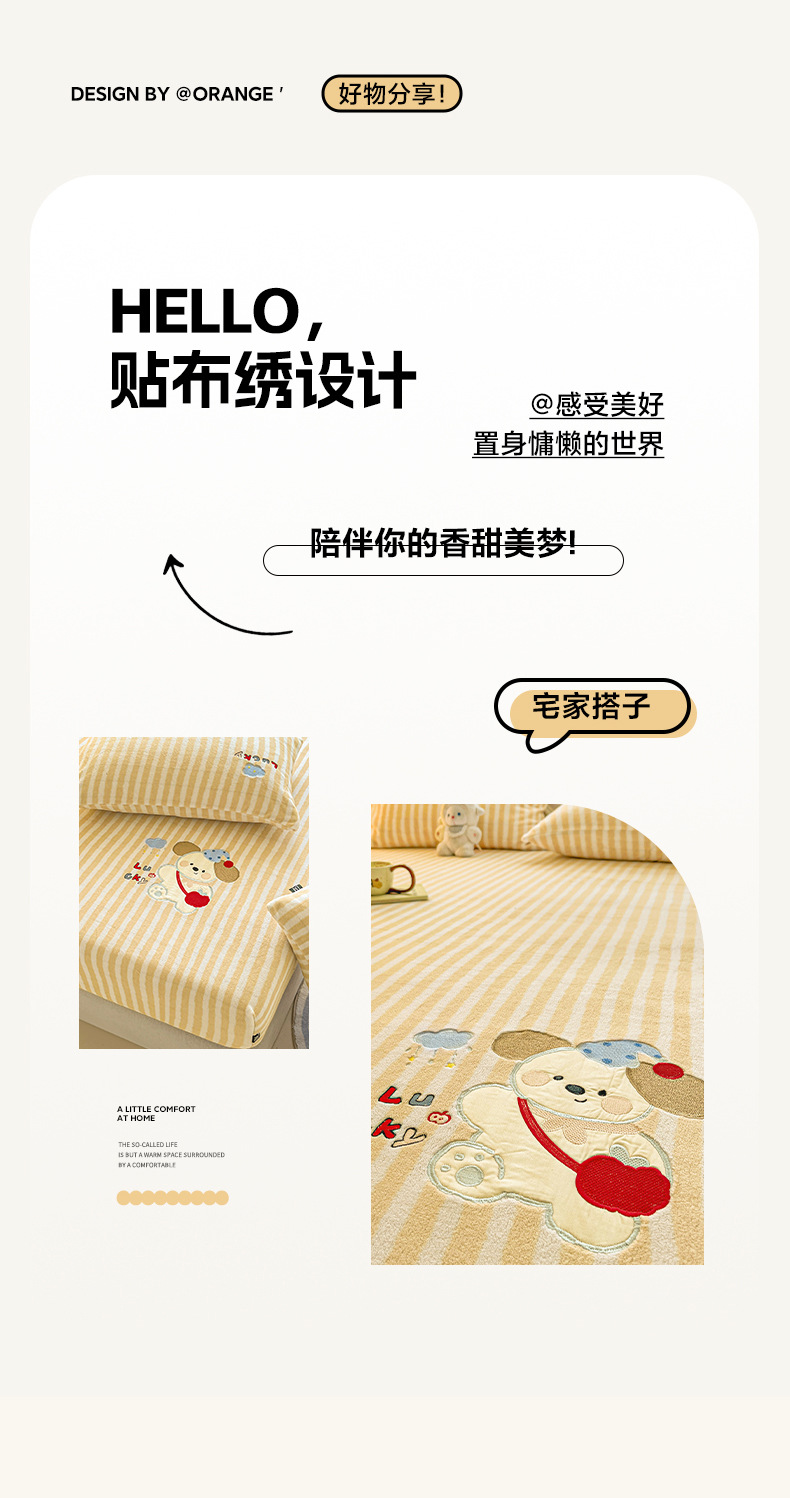 A类牛奶绒单床笠加厚卡通贴布绣床罩家用席梦思床垫套床垫保护套