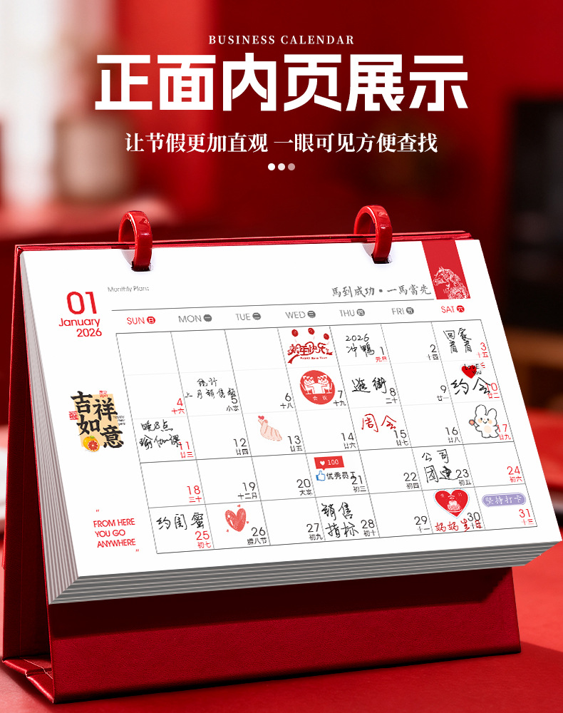日历2026年台历广告创意商务生肖马年台历印刷创意企业可定制LOGO
