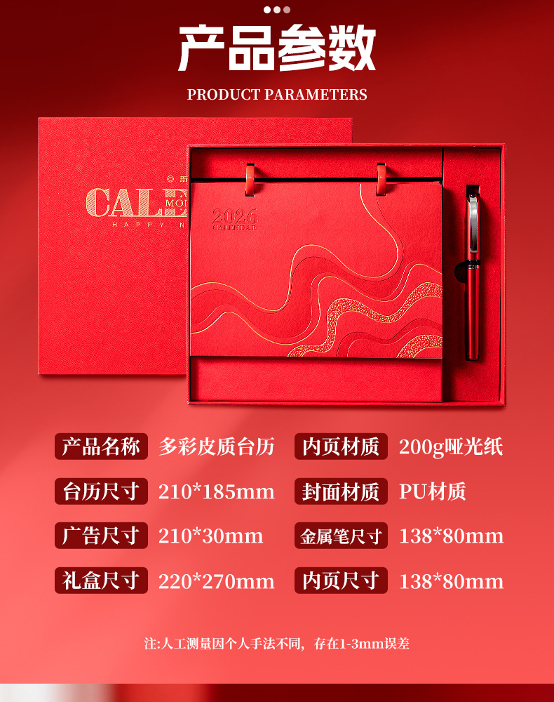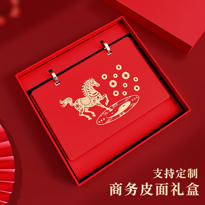 台历2026马年高档礼盒定制logo皮质月历记事本礼盒装订制新年礼品