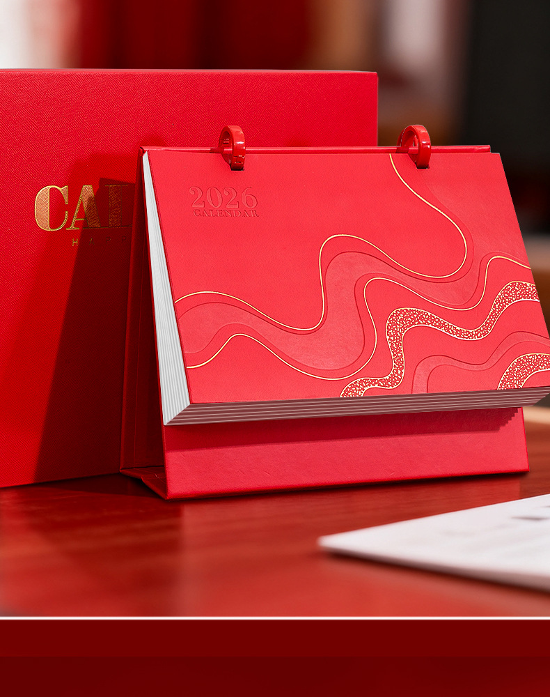 创意皮质2026台历桌面日历摆件吗年皮质工作简约记事礼盒套装月历