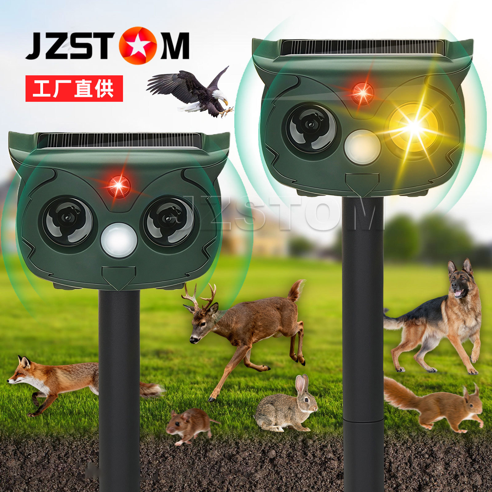 クロスボーダー太陽光ネズミ駆除器超音波パワー鳥駆除器果樹園農場フラッシュ屋外庭園蛇駆除器
