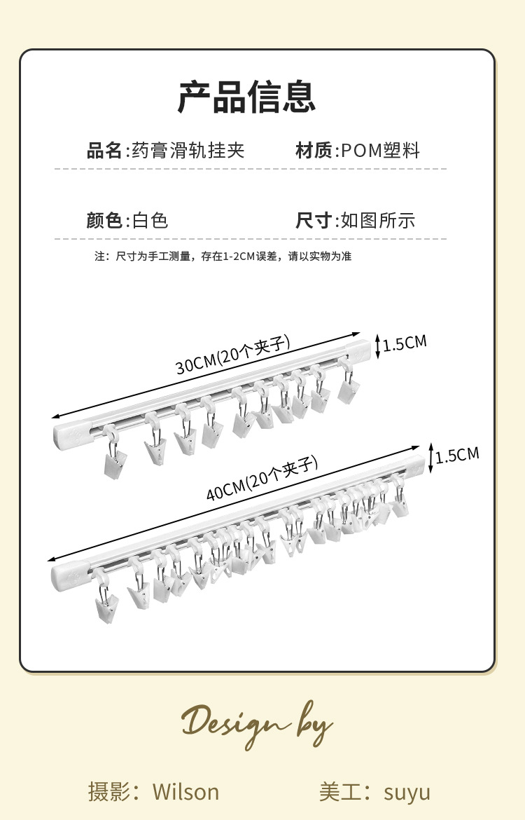 颜色 【30cm】滑动收纳杆(配20个夹子),【40cm】滑动收纳杆(配20个夹子)