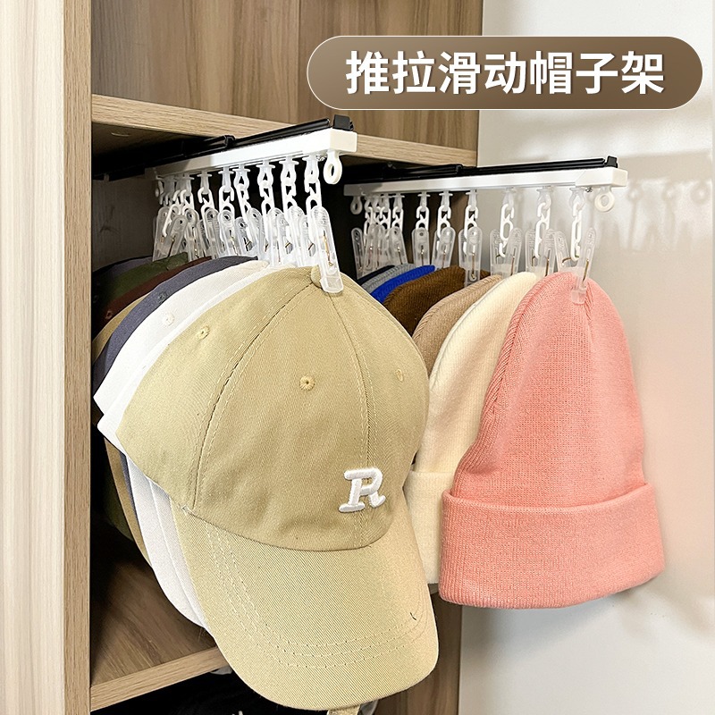 押し引き帽子収納神器服帽子フック赤ちゃん靴下下着家庭用クリップ整理たんす穴なし
