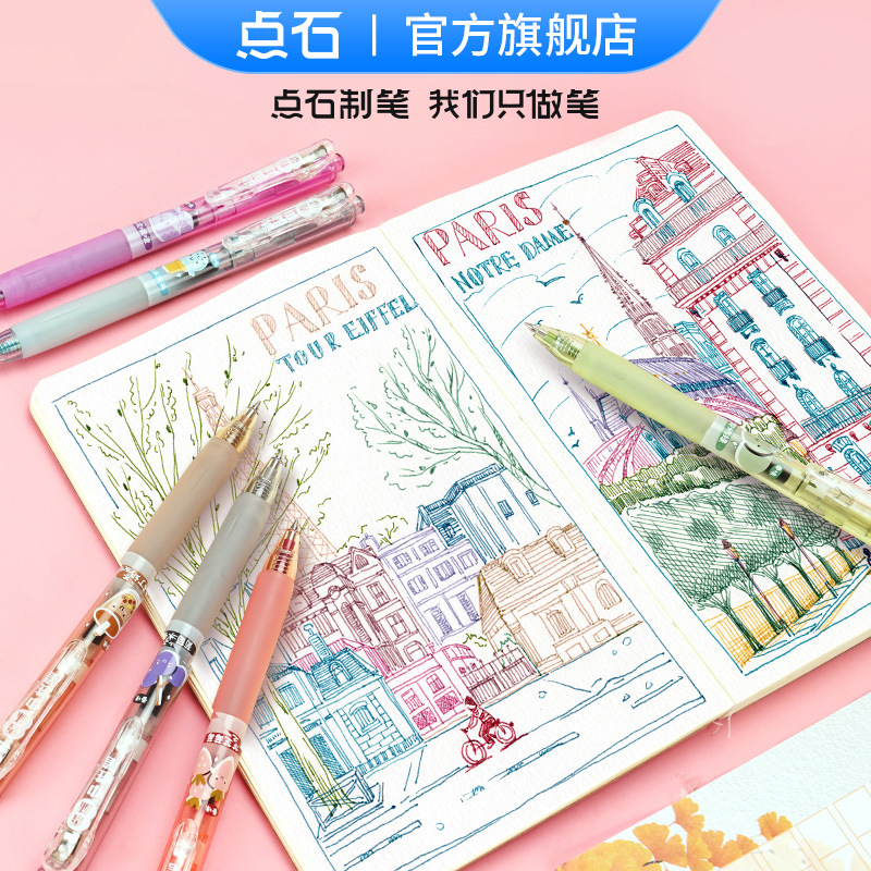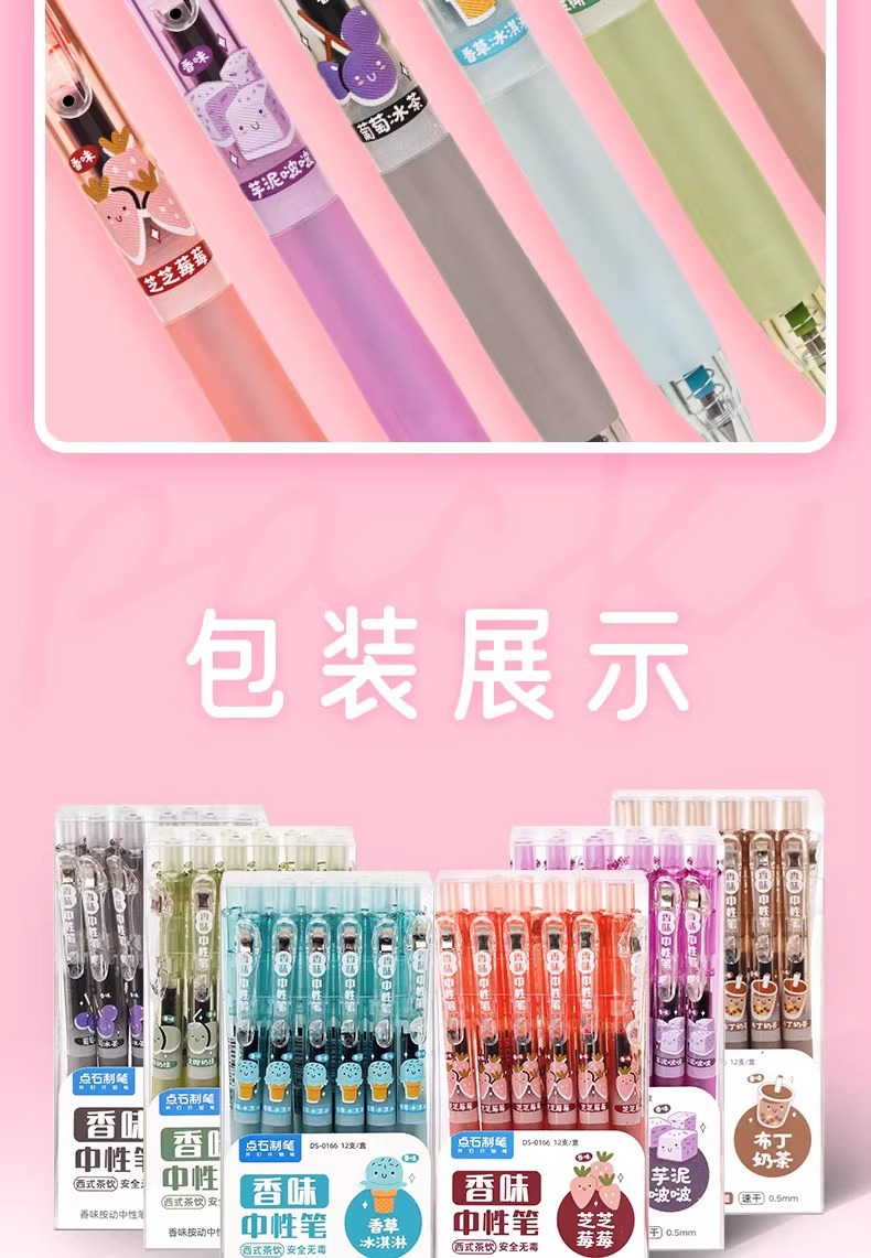 点石按动彩色笔香味中性笔速干顺滑大容量0.5高颜值绘图笔DS-0166
