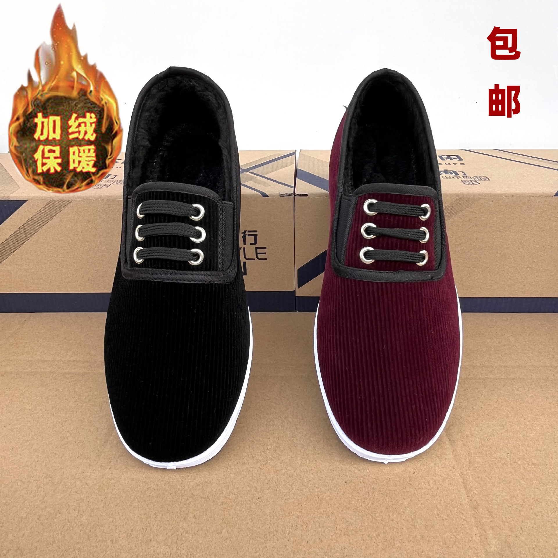 零售包邮相巾棉鞋男女同款条绒布北京布鞋冬季加绒保暖开车工作鞋