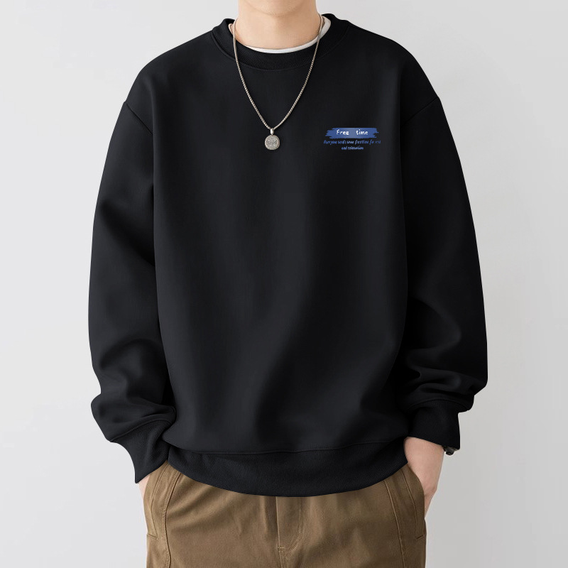 圆领卫衣男士加绒加厚春秋季新款百搭休闲套头男装上衣潮牌