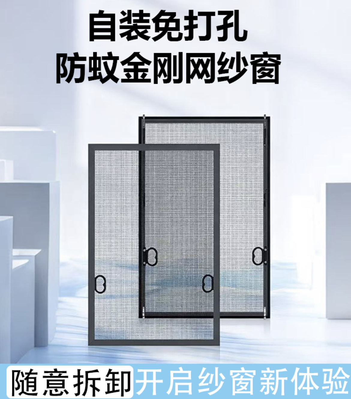 内开窗专用金刚网纱窗免打孔自装家用高透隐形防蚊虫可拆卸纱窗