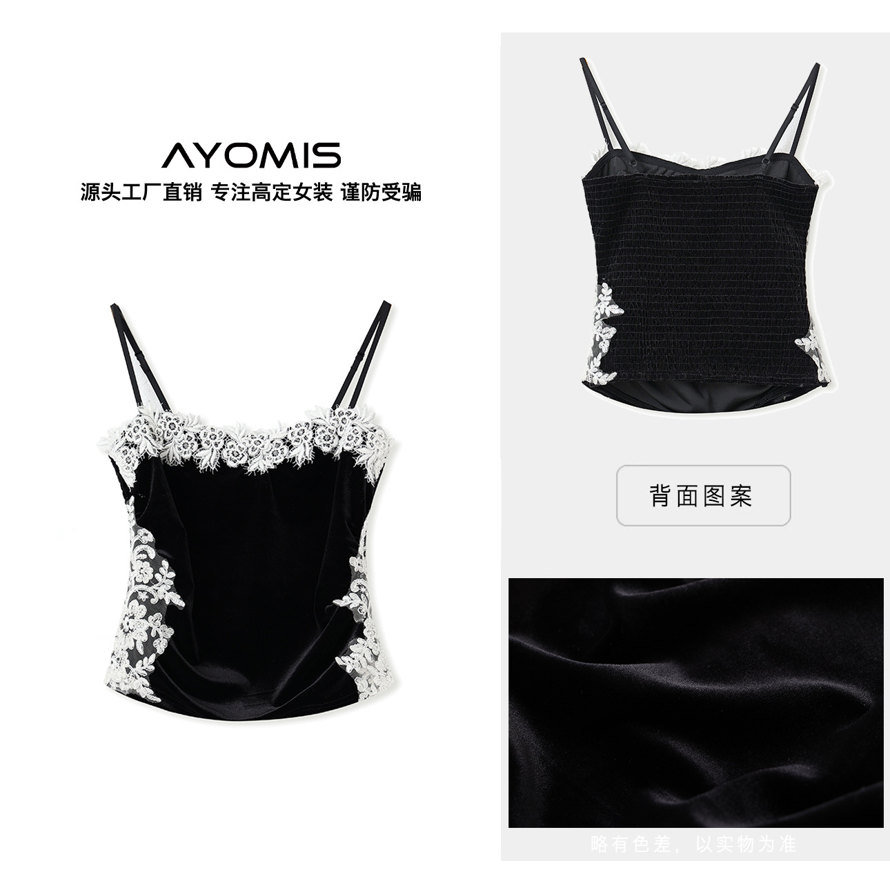 秋季国风蕾丝拼接丝绒设计感吊带甜美百搭气质新中式背心女 N9096
