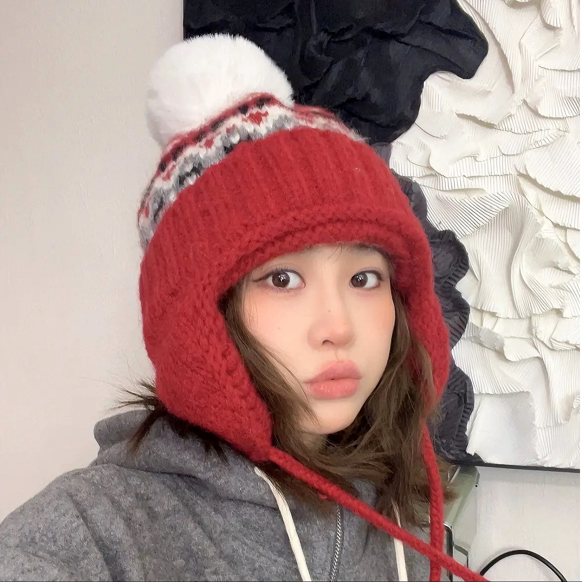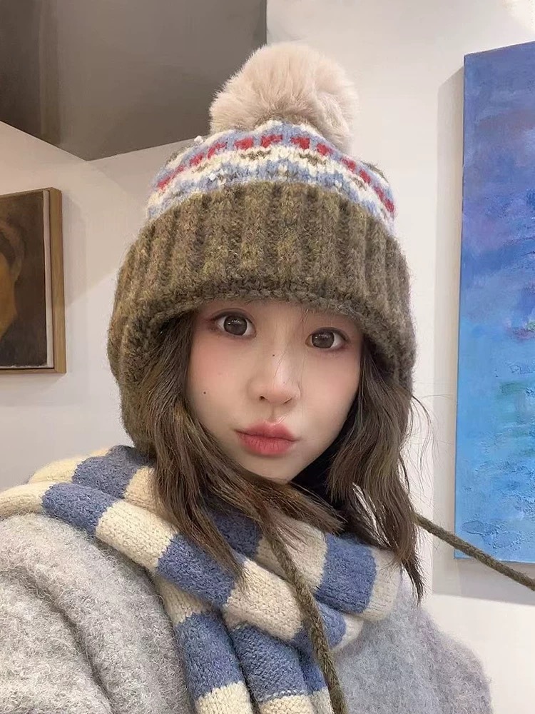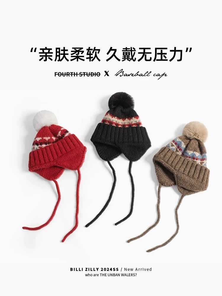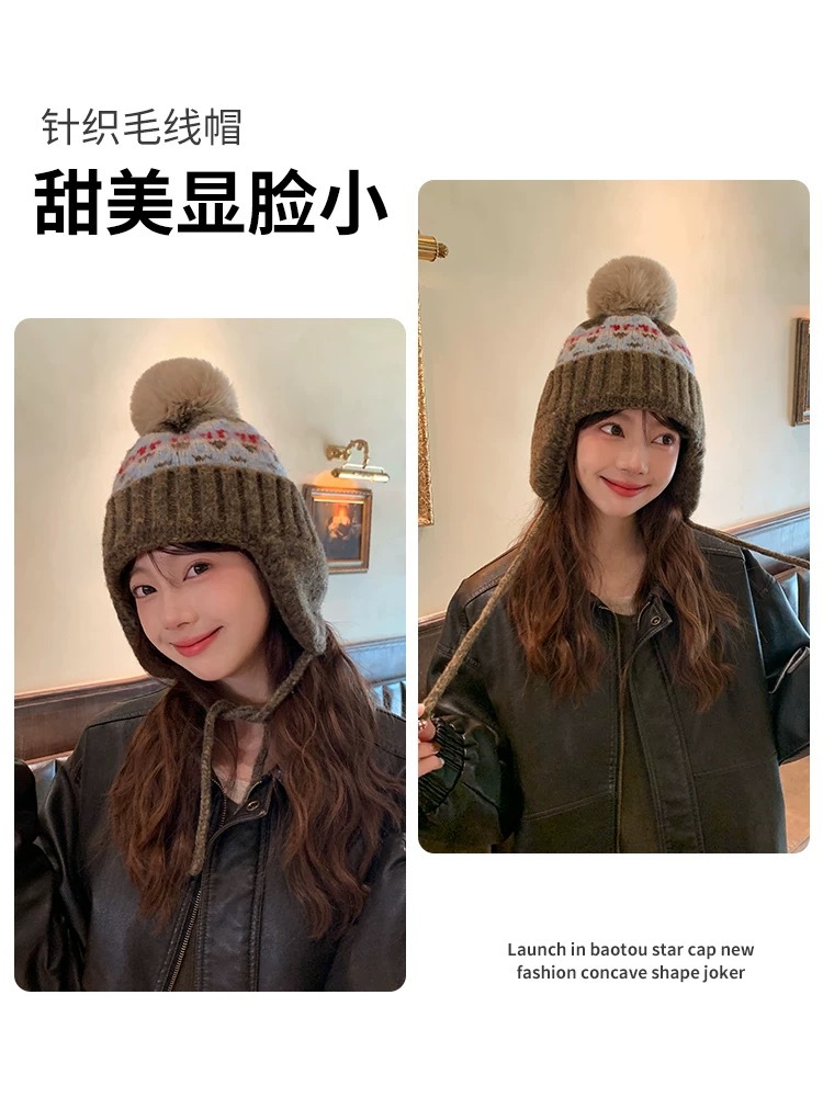 费尔岛帽子女秋冬季加厚绒保暖护耳显脸小毛线防寒针织包头针织帽