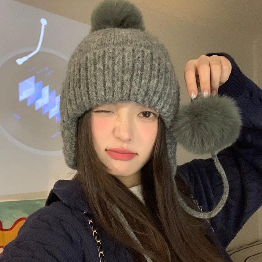 韓国のバラクラファー帽子女性冬の保温帽子は首を囲むカップルの耳保護毛糸ニット帽です。