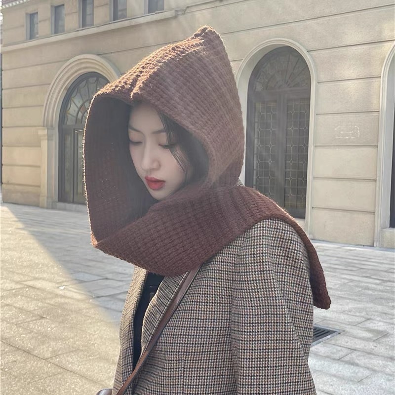ウールの帽子の女性のマフラー2024の新型の帽子のマフラーの一体の秋冬の厚い保温のバラクの帽子