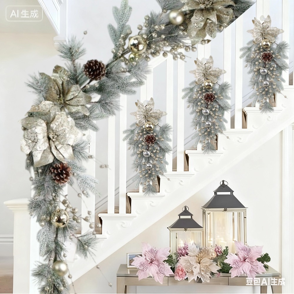 クリスマス起爆バービーピンククリスマス花メッキボール雪霜植毛PE松針藤輪花環藤条