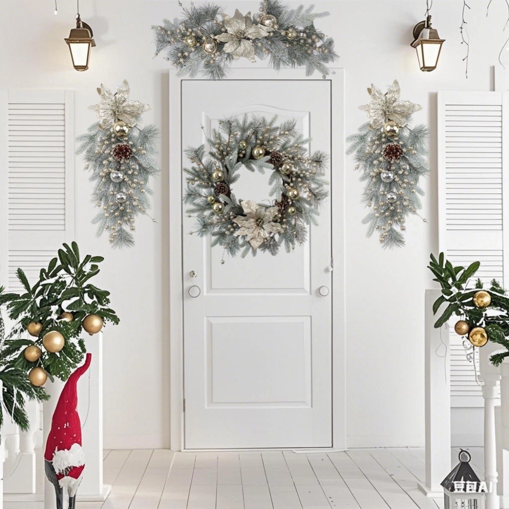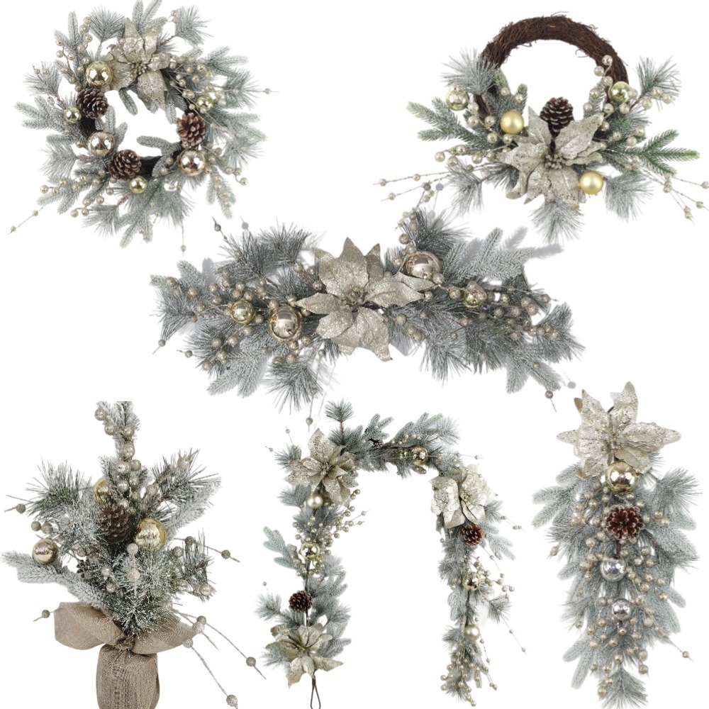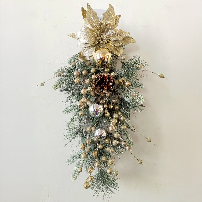 颜色 香槟色圣诞花光波球浆果雪粉松针铁丝门楣N606/70cm/221g,香槟色圣诞花光波球浆果雪粉松针铁丝倒挂树D613/50cm/210g
