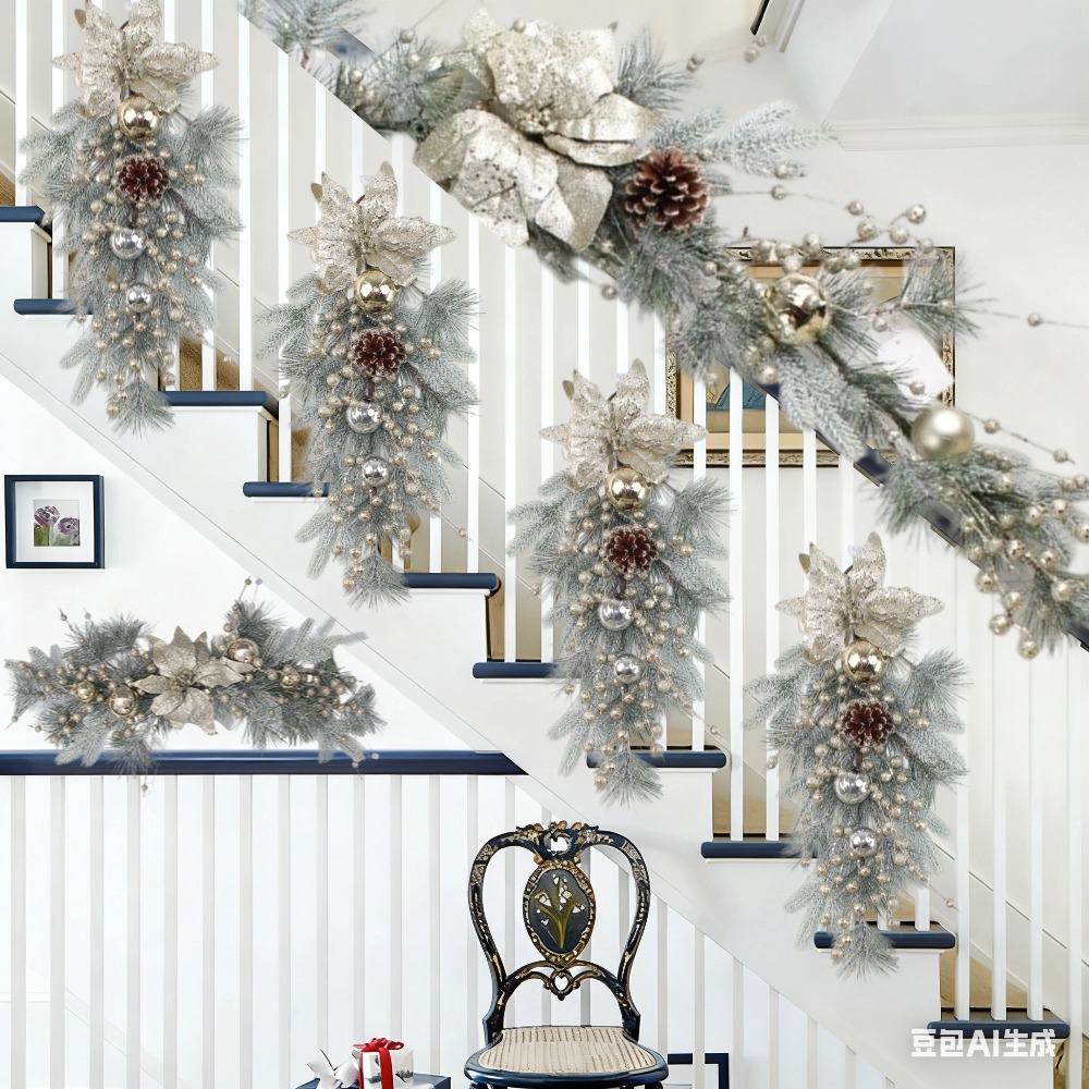 国境を越えたクリスマスの花輪アマゾン松果雪霜松針金色の枝葉メッキボール藤輪門掛藤条セット