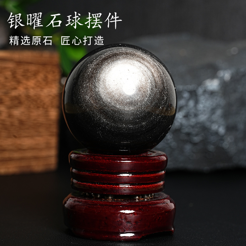 天然の銀曜石玉の黒曜石水晶の手作りの丸いボールは家具を磨いて猫の眼球のDIYのアクセサリを並べて卸売りします。