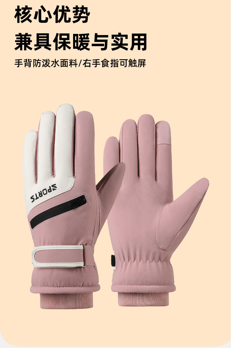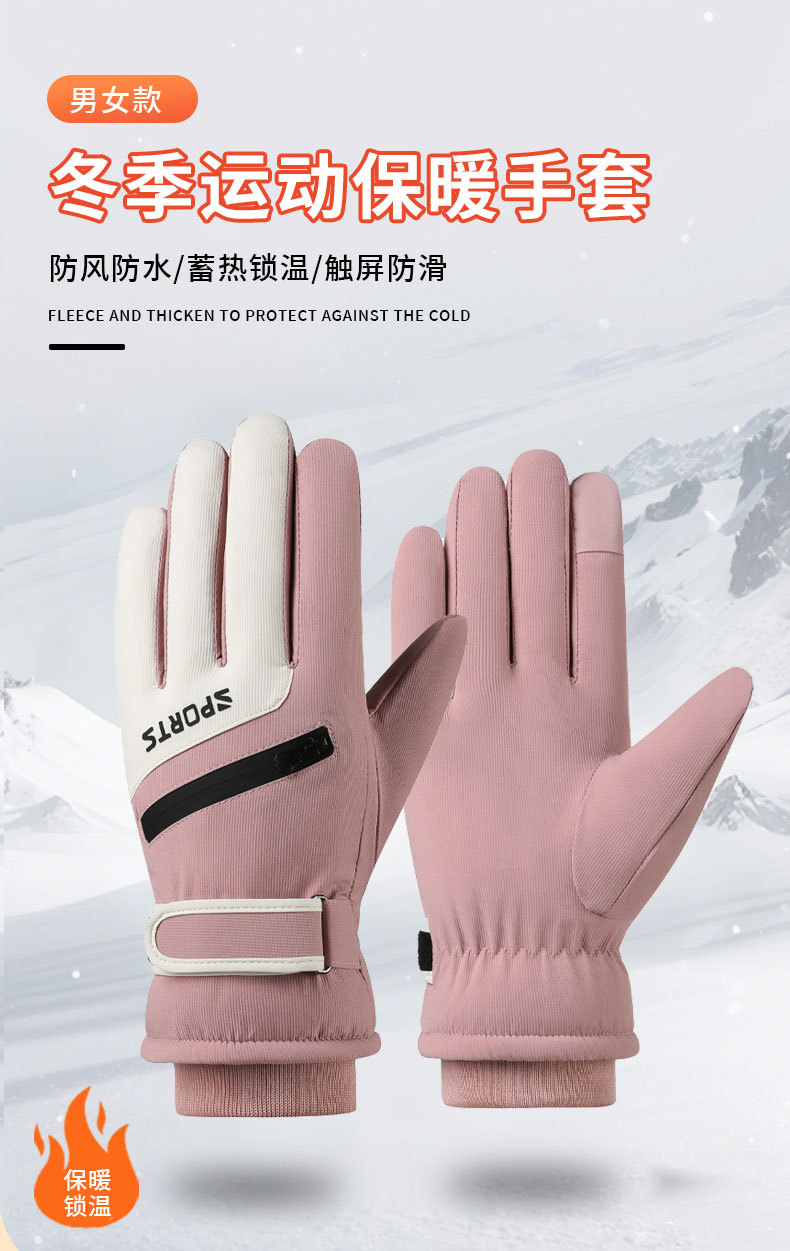 冬季防寒保暖手套男防泼水防滑可触屏加绒加厚户外骑行滑雪手套女