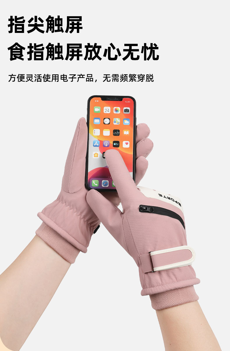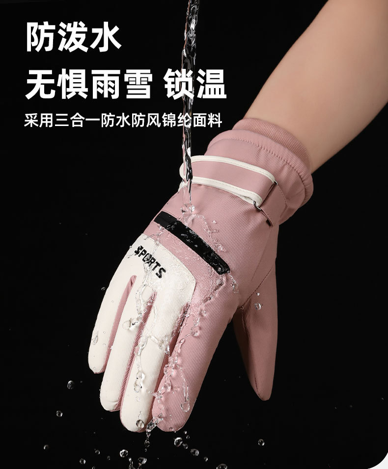 冬季防寒户外保暖手套女款防泼水防滑可触屏加绒加厚骑行滑雪手套