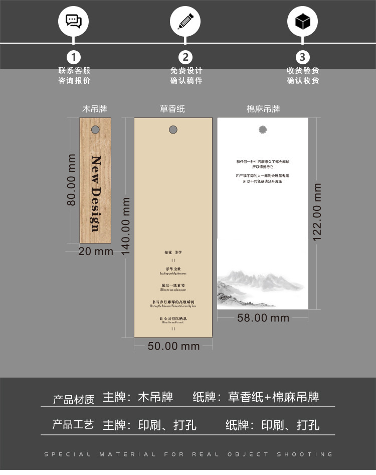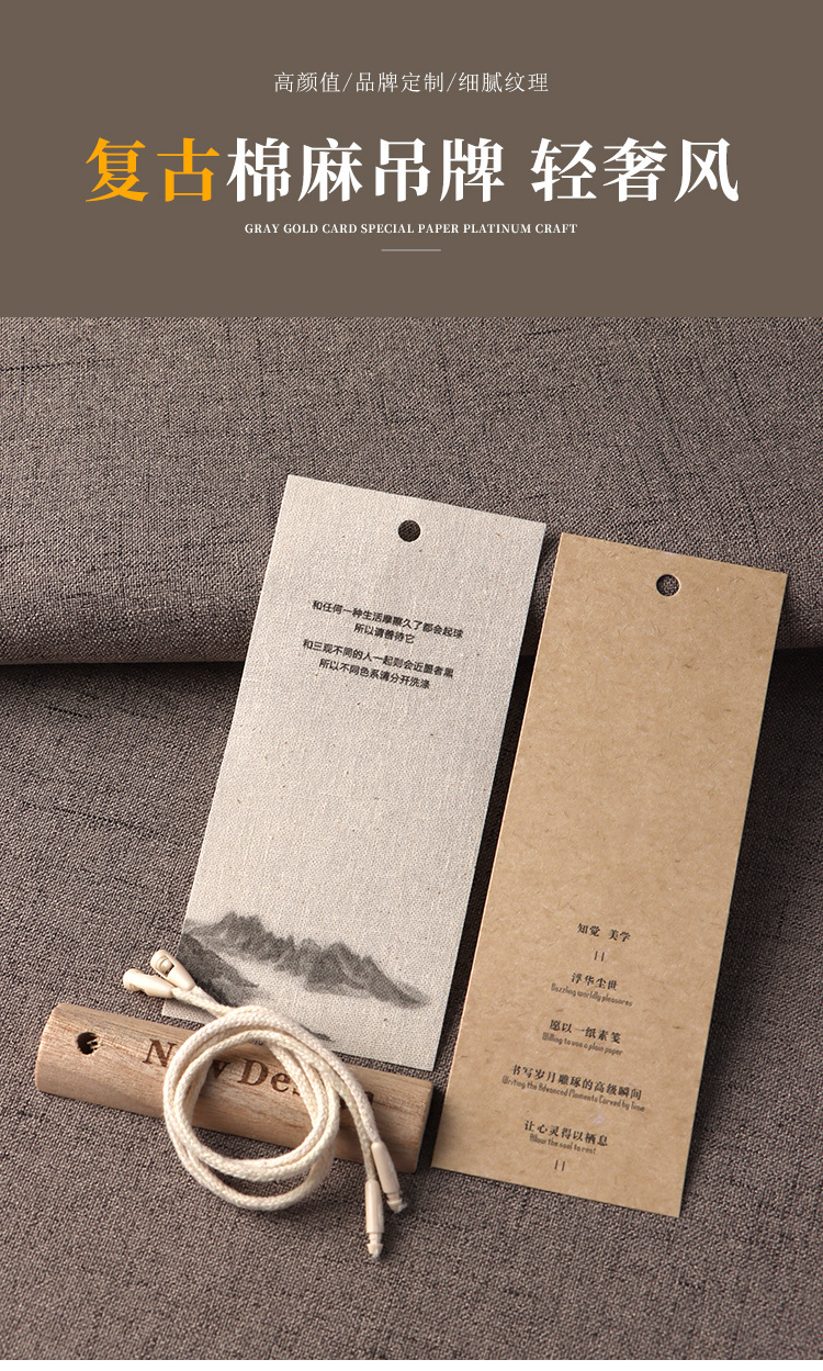 服饰香樟木吊牌定 做棉麻布吊牌白卡纸铜版纸吊牌定 制简约风吊牌