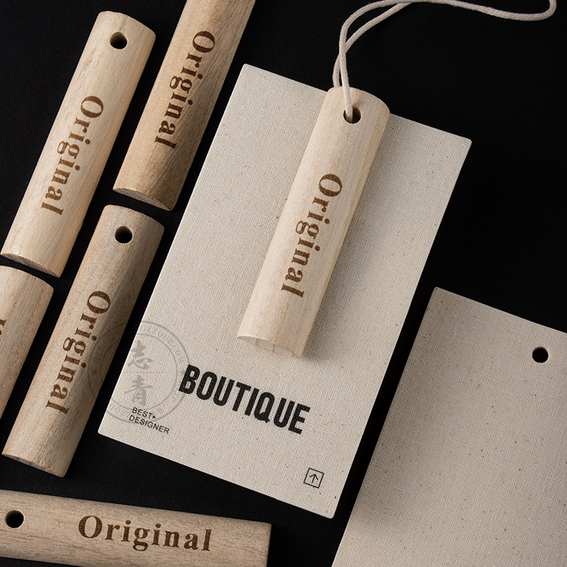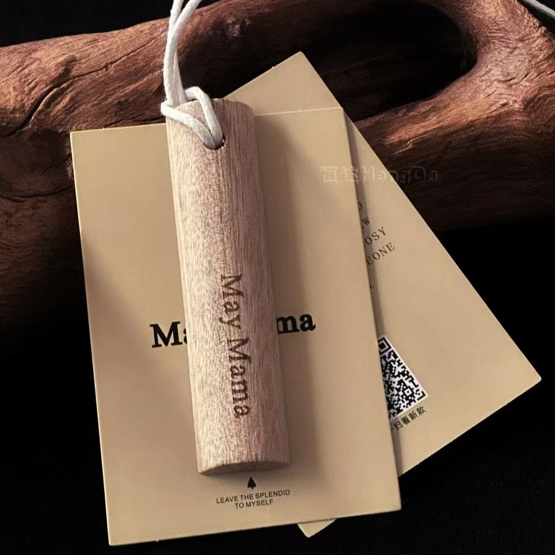 木製衣料品タグ、高級ラベル、天然樟脳、無料デザインロゴ、紳士・婦人服吊り下げカード
