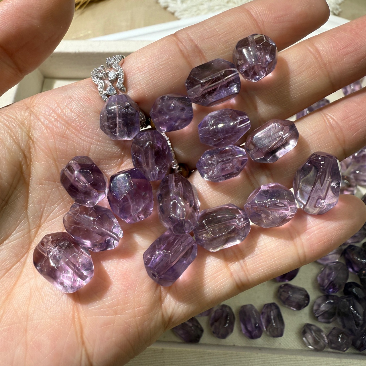 天然透明アメジストファセットジェリービーンズアクセサリースルーホール DIY 手作りビーズブレスレットネックレス