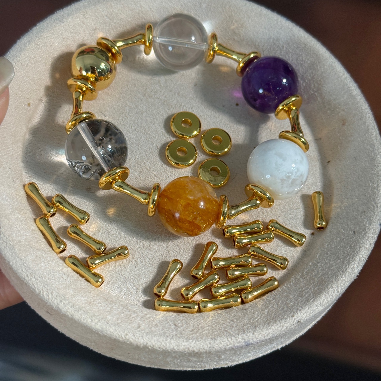 尚尚迁珠宝 真空镀18K金色竹节长管隔珠水晶串珠配件