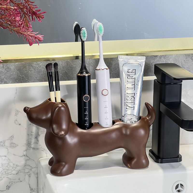 腊肠狗陶瓷电动牙刷架子置物架洗漱台牙刷牙膏化妆刷收纳底座支架