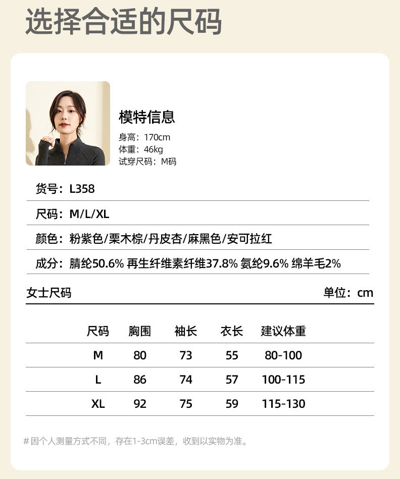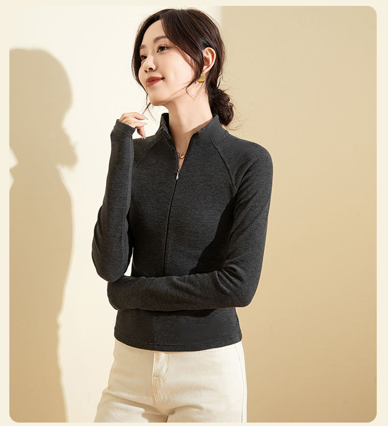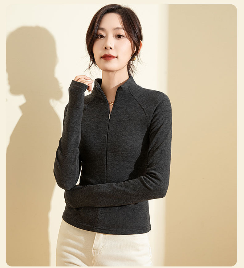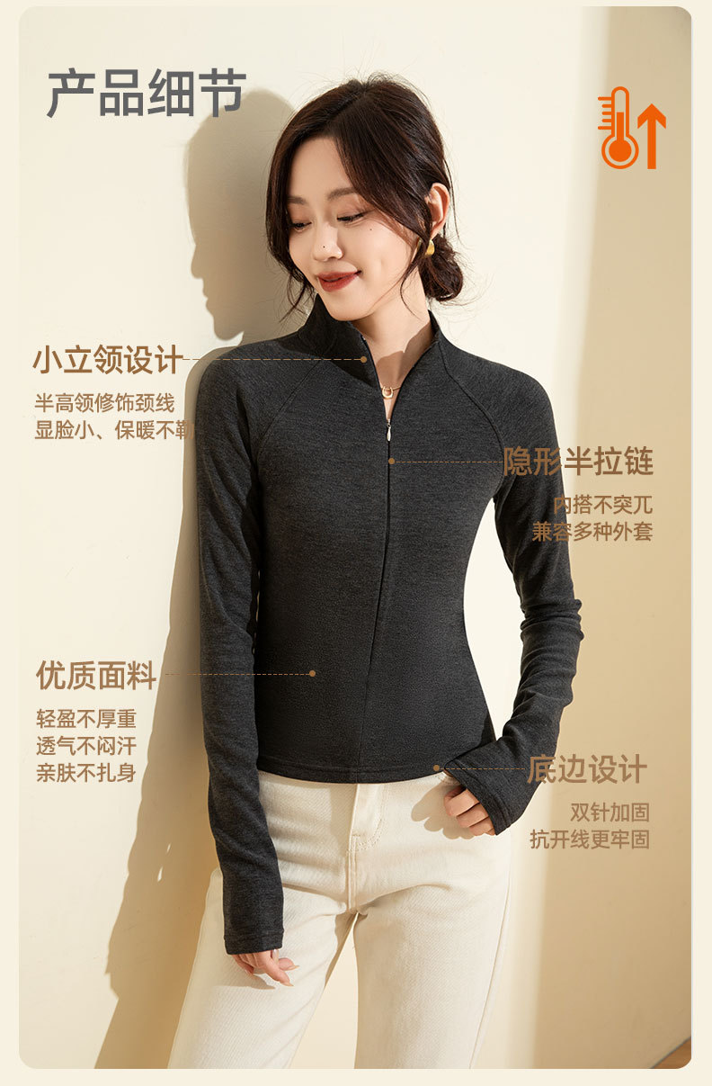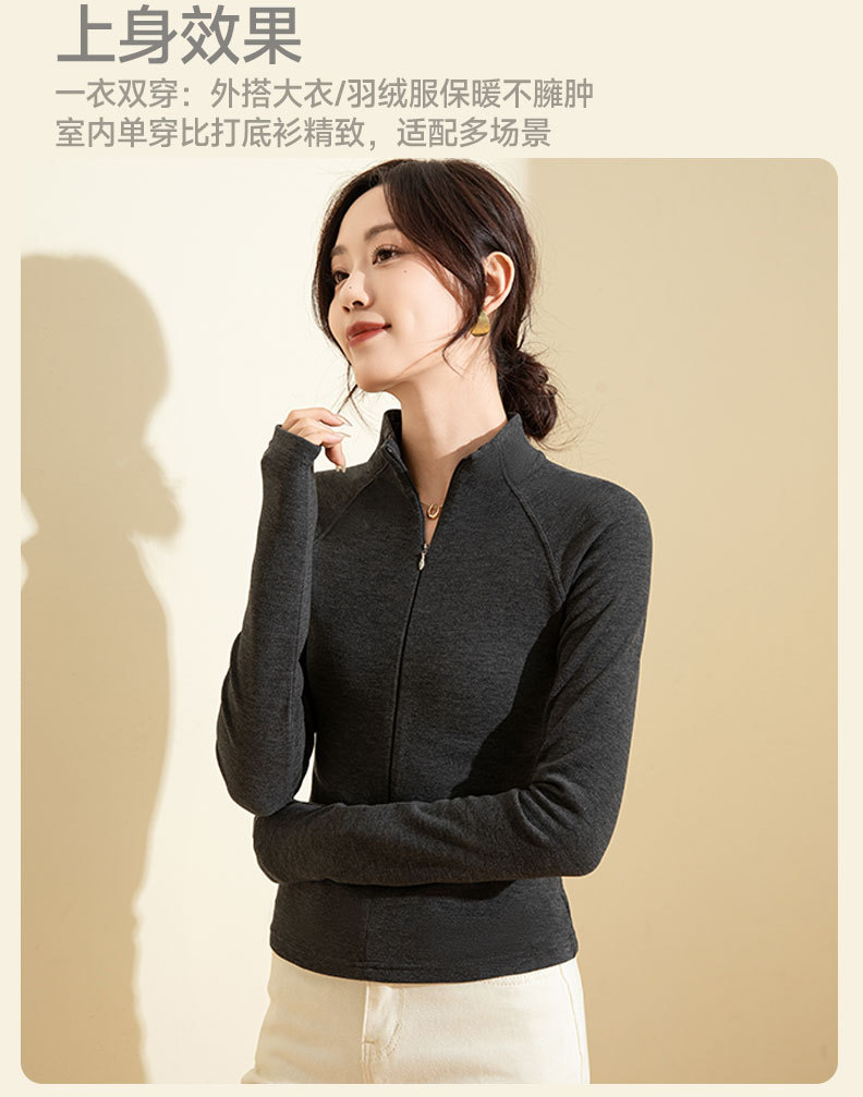 350克膨体德绒羊毛打底秋冬立领半拉链修身显瘦保暖内衣长袖L358
