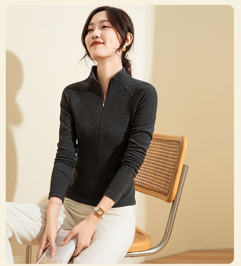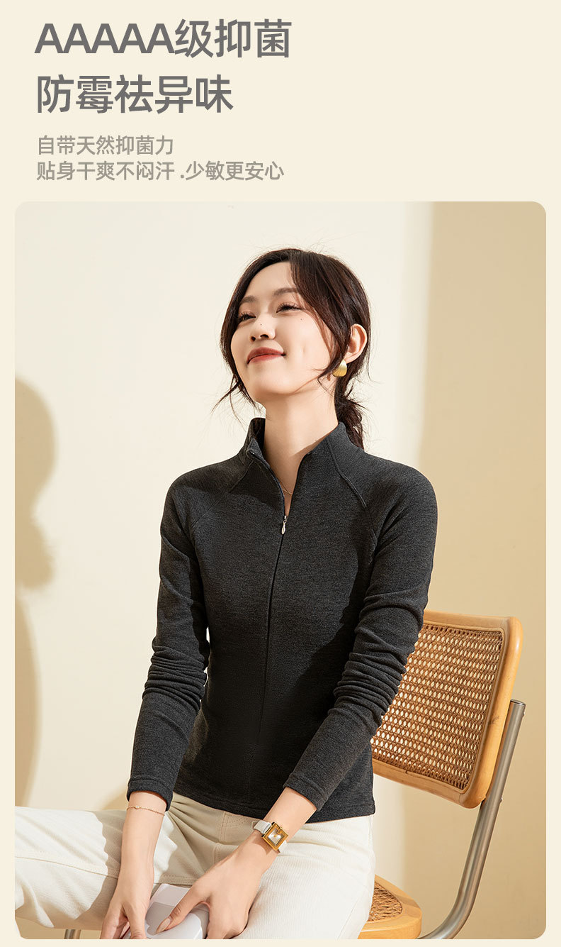 抑菌】秋冬打底衫保暖加厚秋衣羊毛半高领小立领修身女士L365