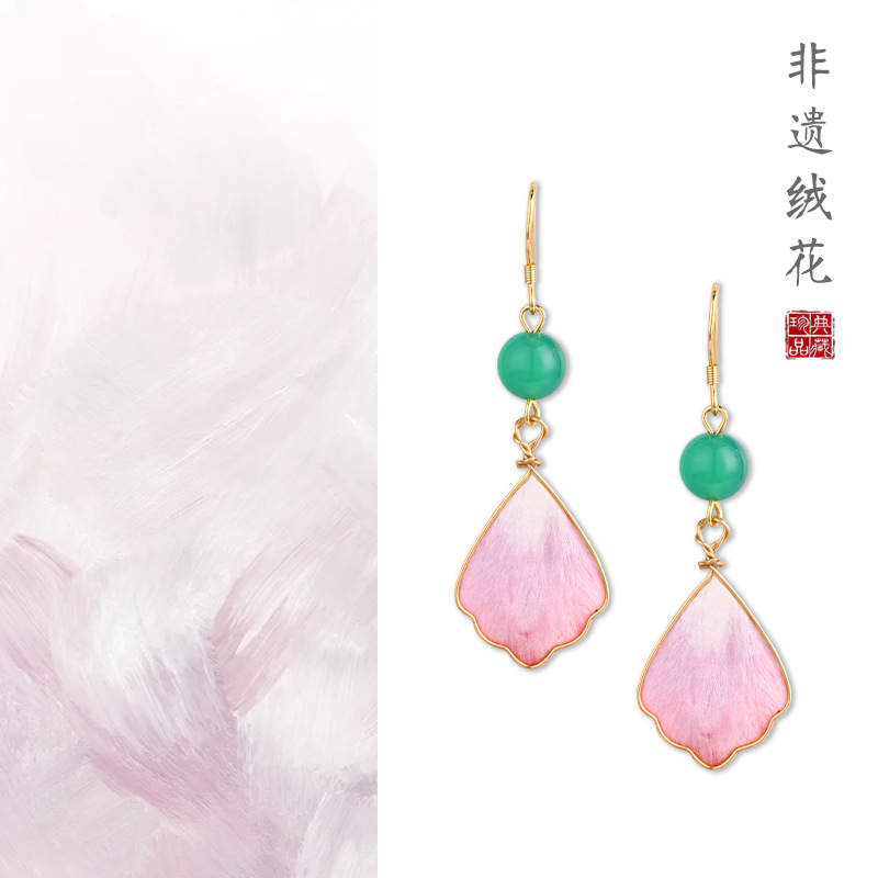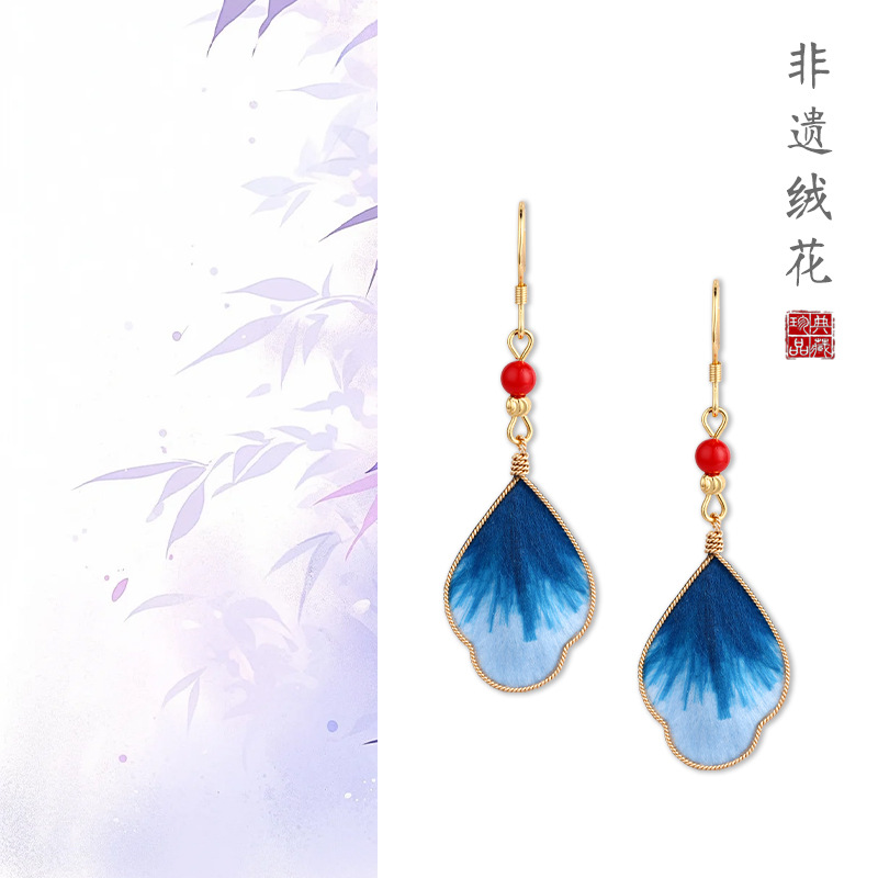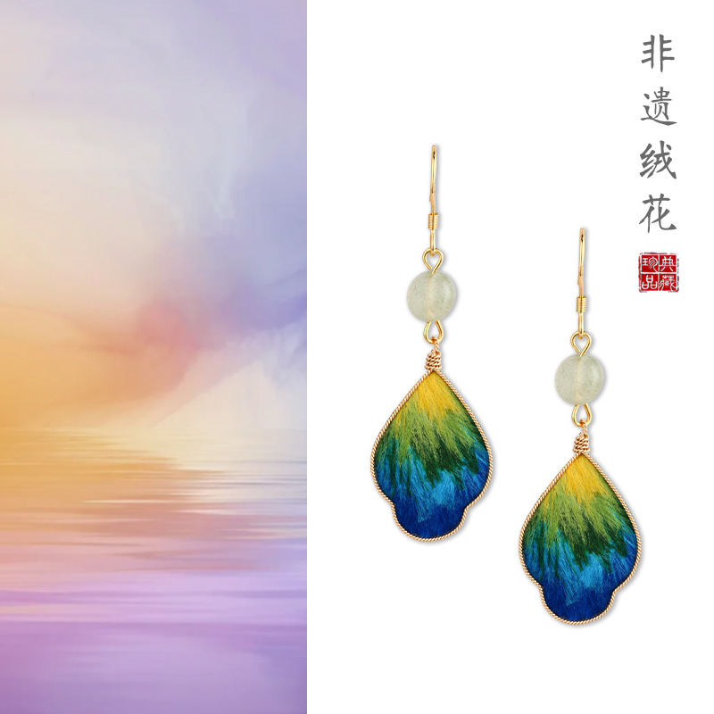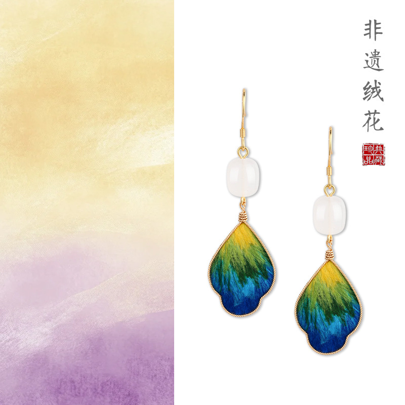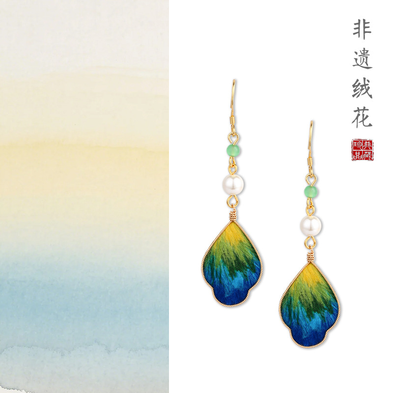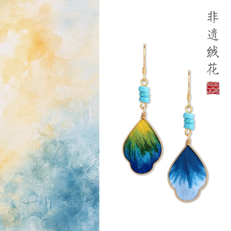 【原创非遗系列】千里江山蚕丝绒花古风耳环纯手工设计新中式耳饰