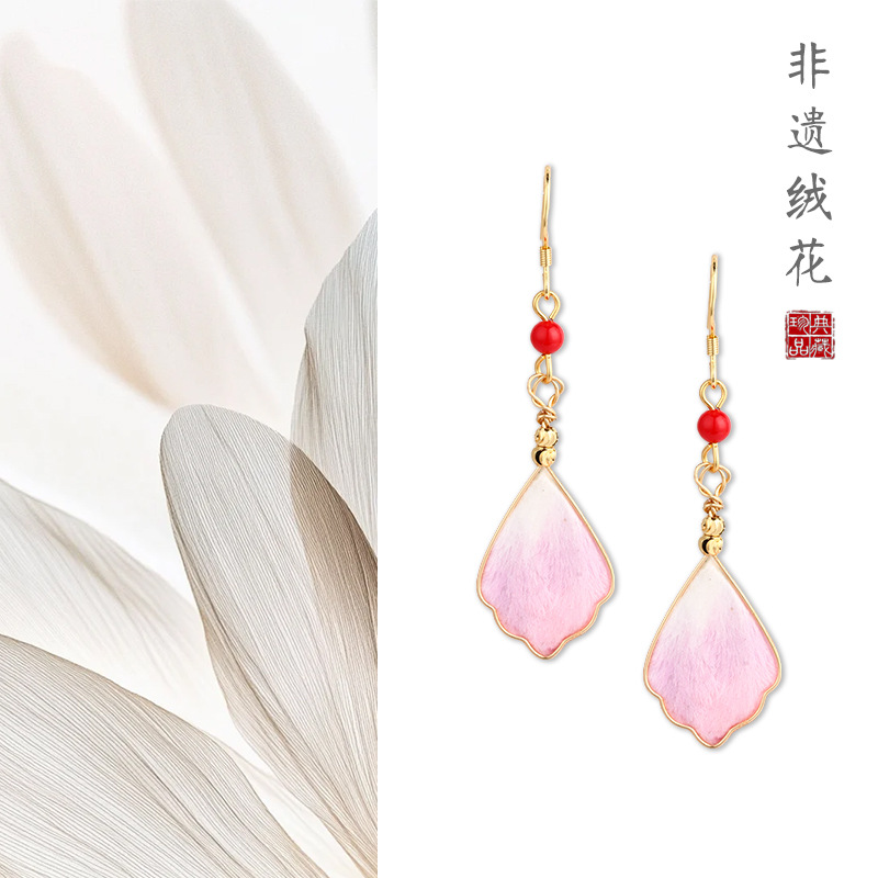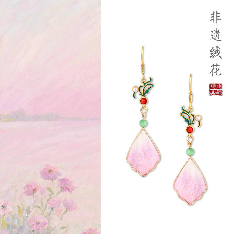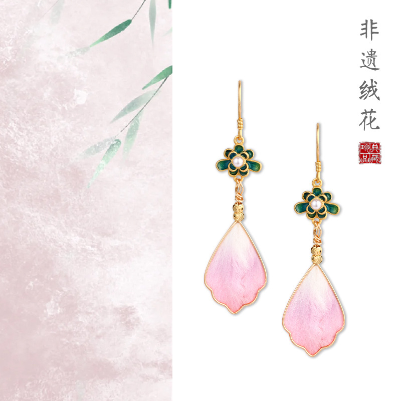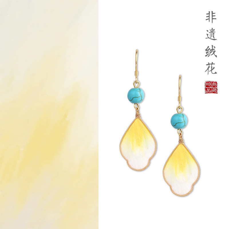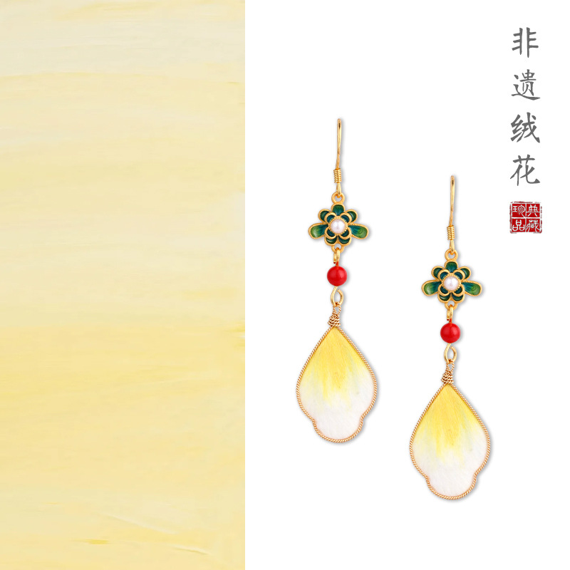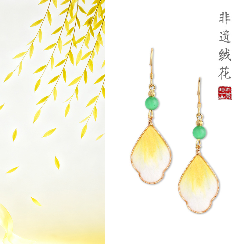 【原创非遗系列】千里江山蚕丝绒花古风耳环纯手工设计新中式耳饰