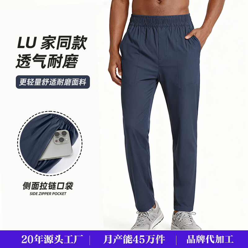 lulu家跑步长裤男户外健身裤速干运动长裤透气弹力运动裤厂家批发