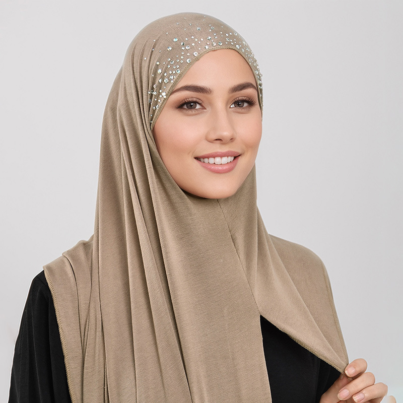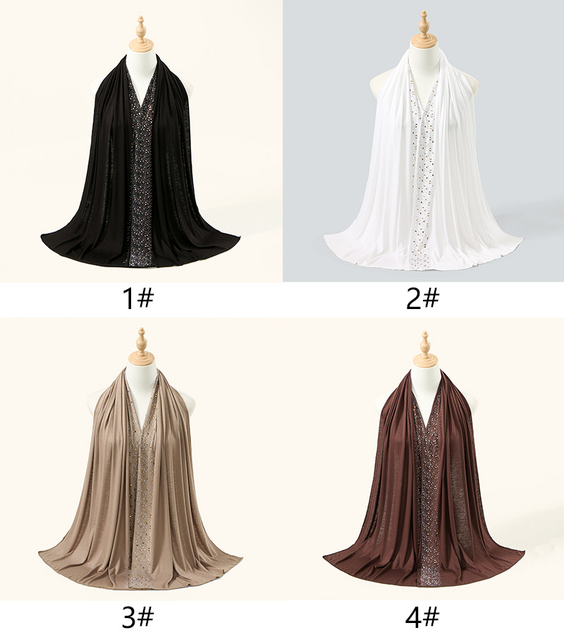 跨境热销新款菱形烫钻丝光棉百搭长巾女马来纯色民族风披肩包头巾