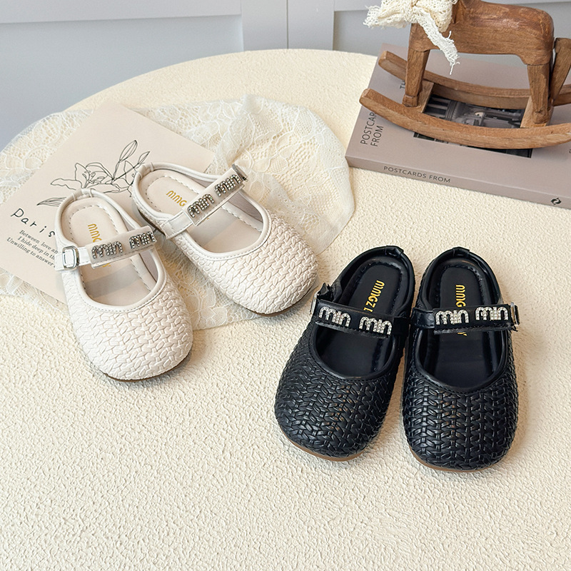 女の子の小さな革靴 2025 春と秋の新しい子供のソフトソール多用途ラインストーンレターシューズ韓国スタイルの女の子のプリンセスシューズ