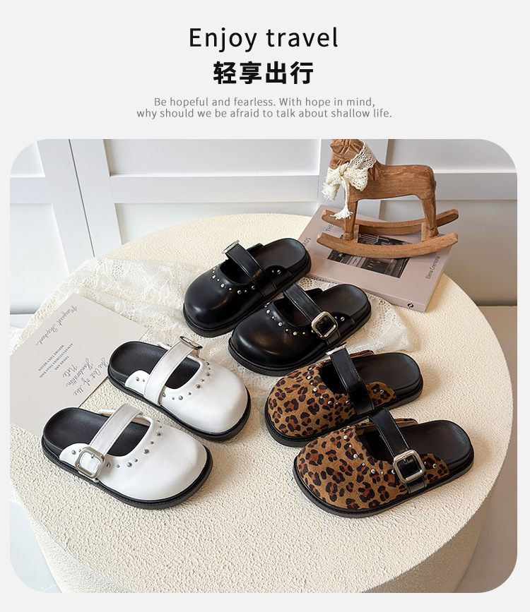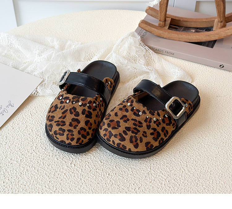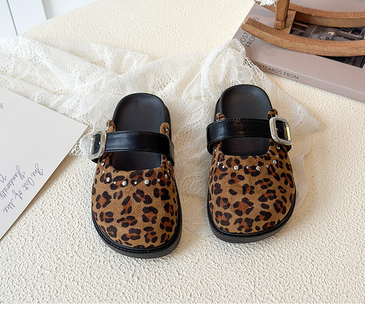 儿童豹纹外穿拖鞋2026年夏季新款韩版女中大童百搭一脚蹬凉拖鞋潮