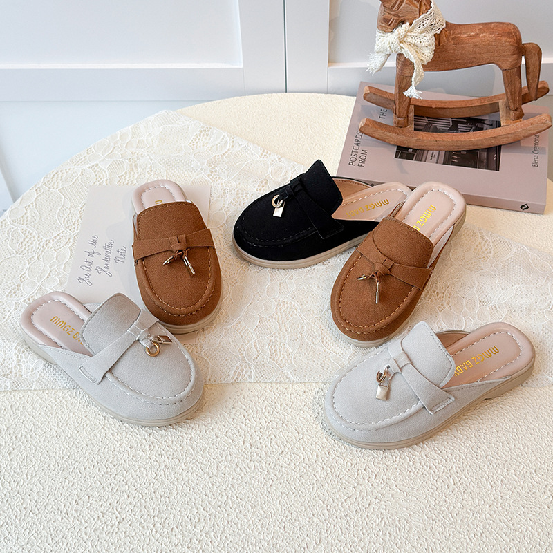 赤ちゃんのファッションは包頭半スリッパを履いて2025夏の韓国版の新型子供の怠け者のフラットスリッパを着ています。
