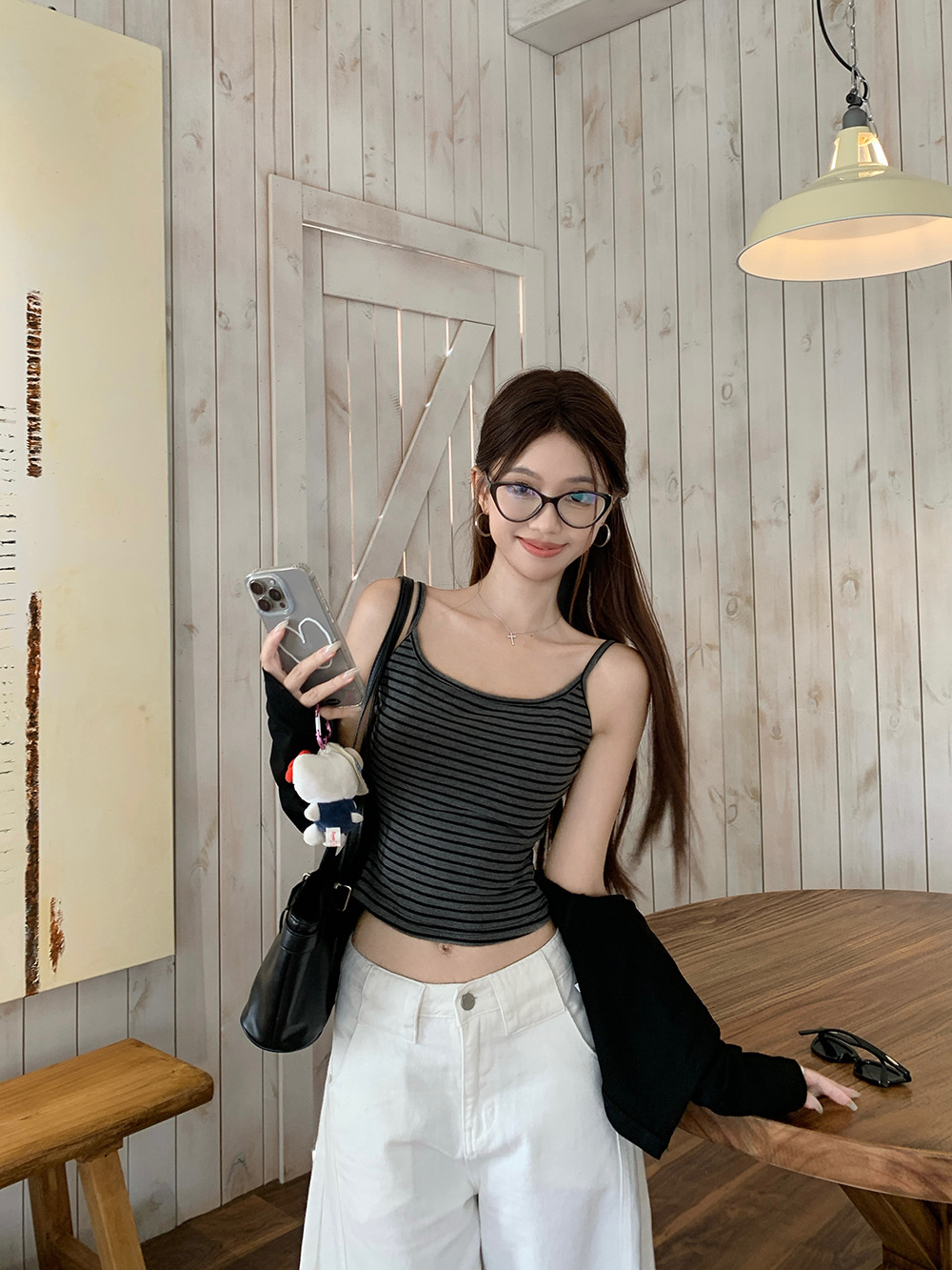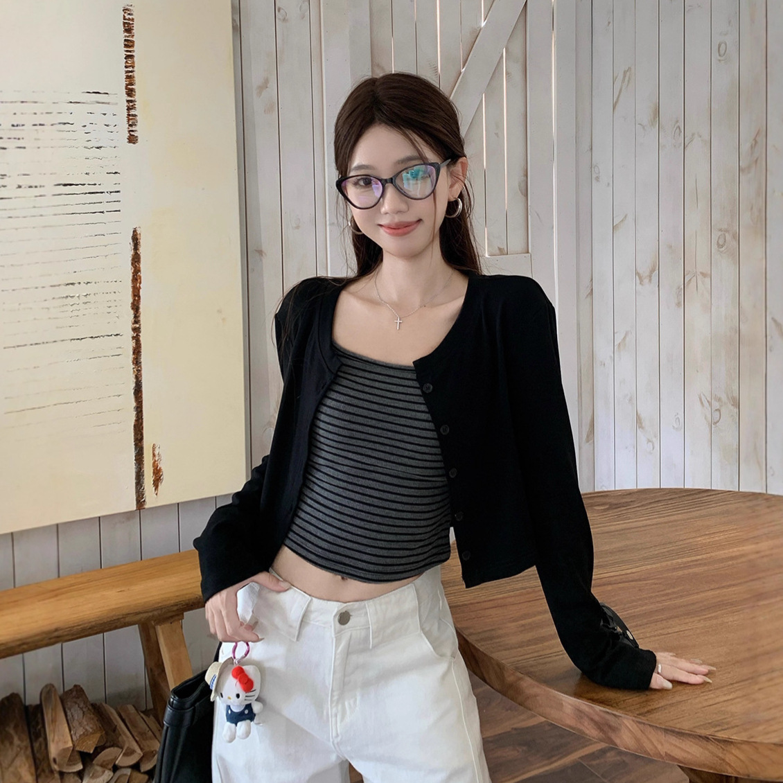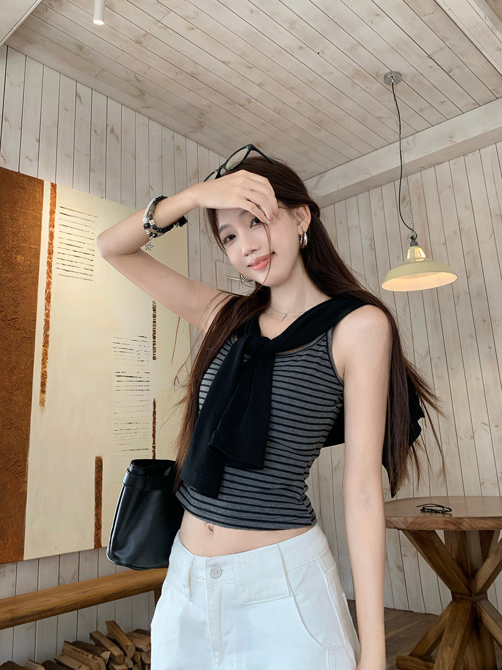 颜色 A278 条纹吊带+黑色开衫