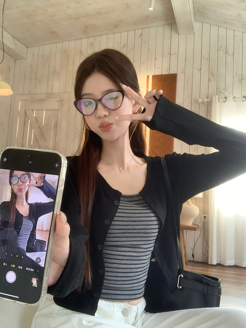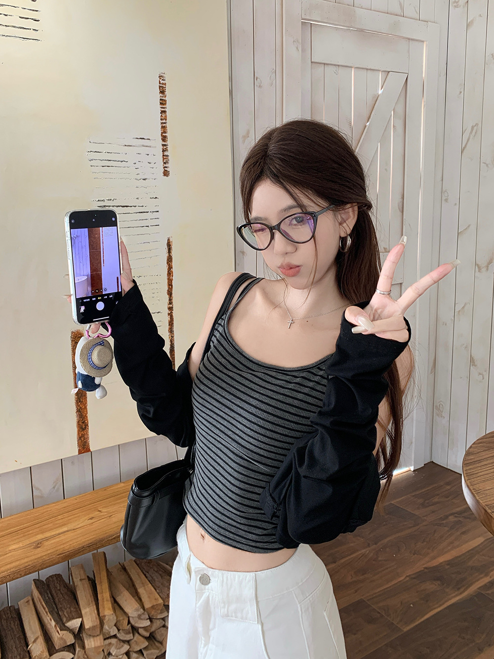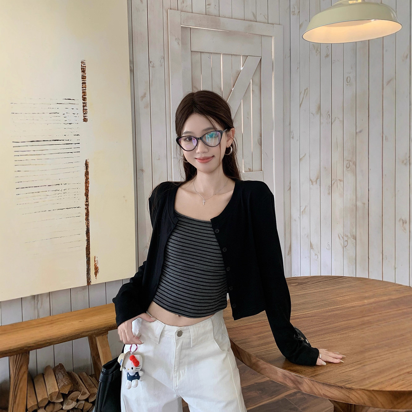 颜色 A278 条纹吊带+黑色开衫