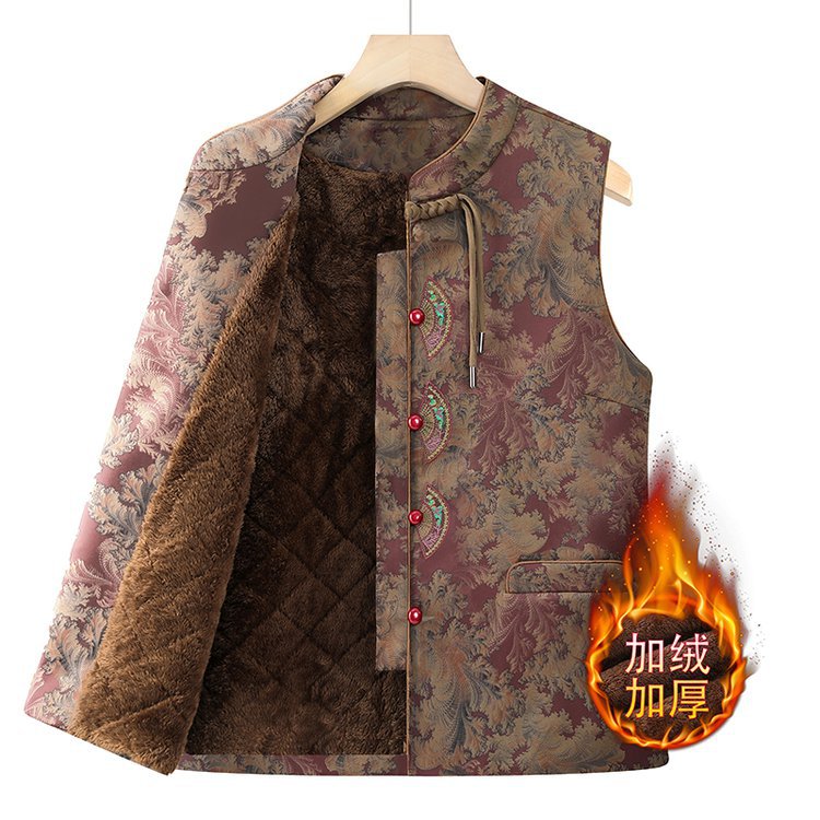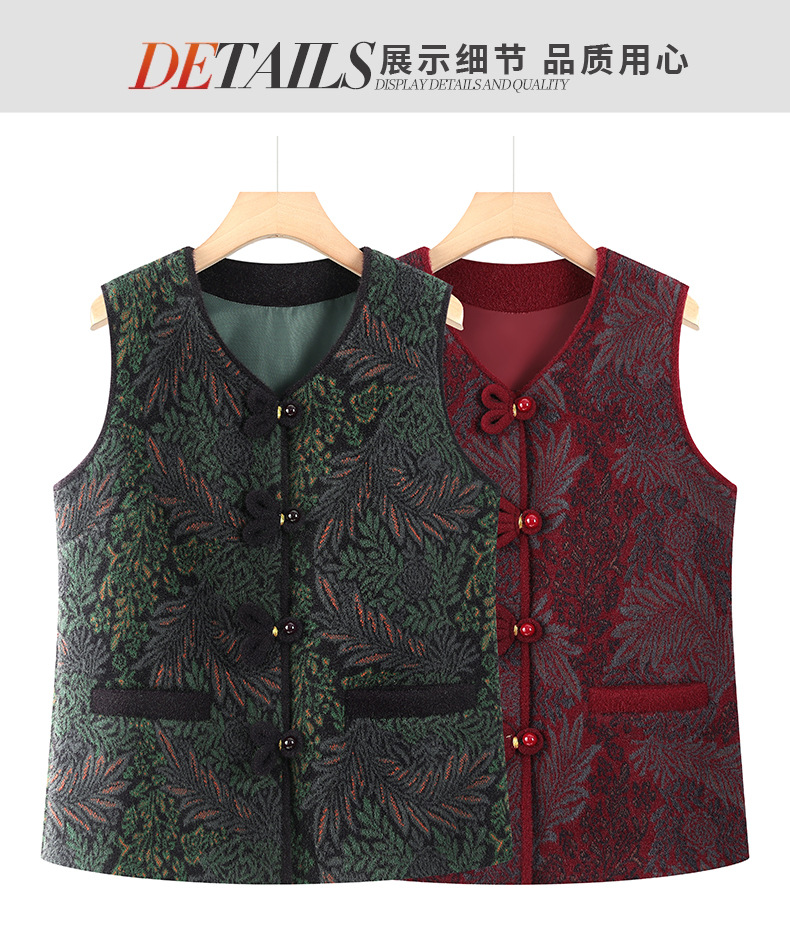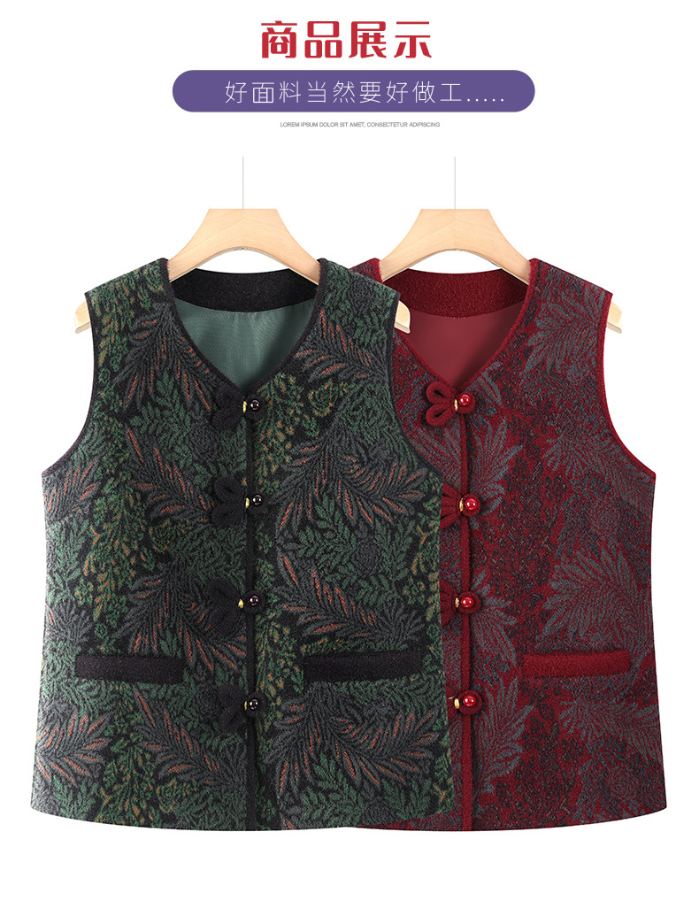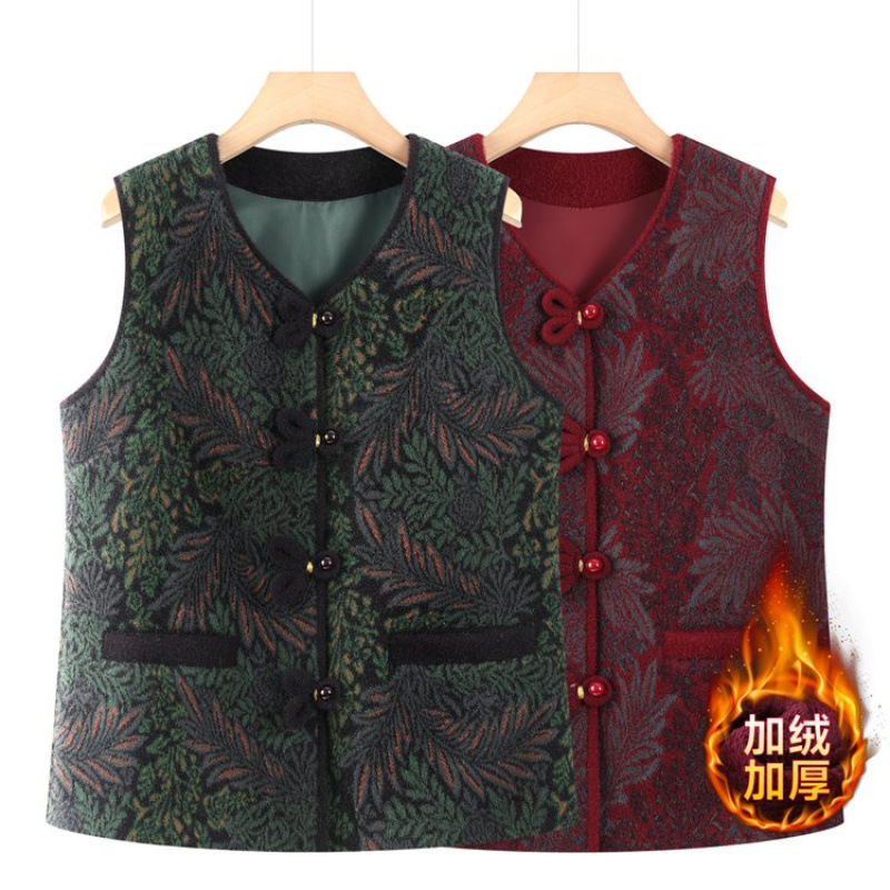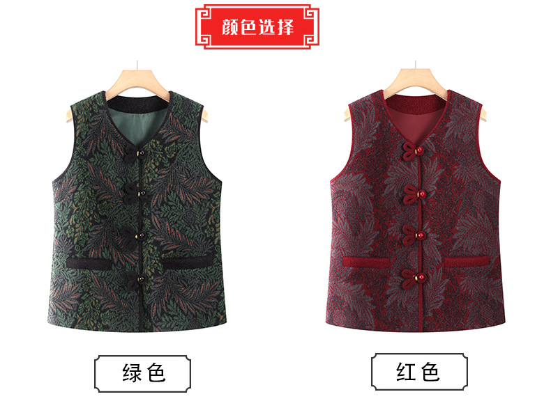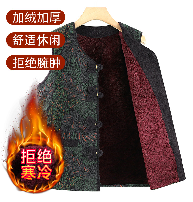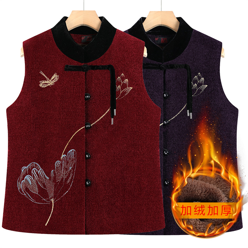 秋冬新中式加绒加厚马甲妈妈外套中老年女装奶奶上衣马夹坎肩