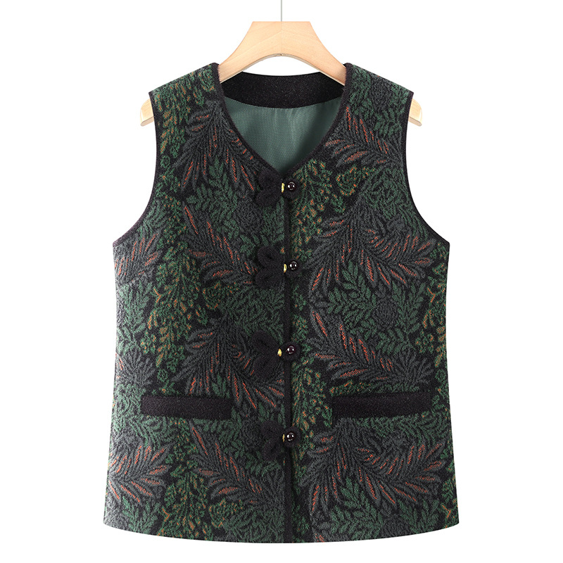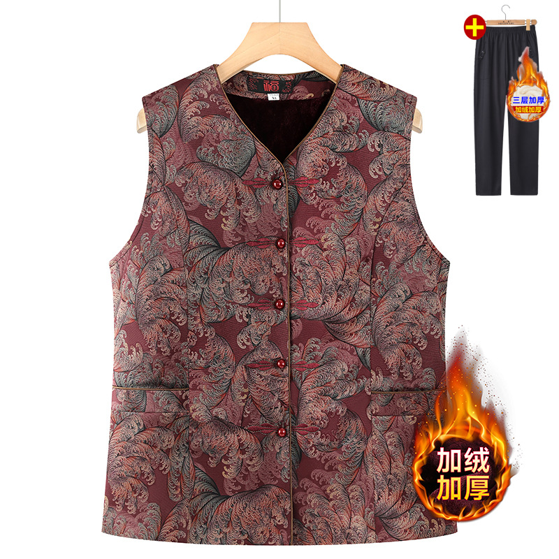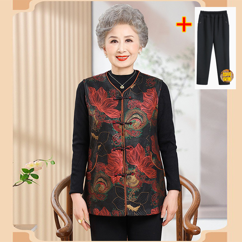 妈妈装新中式国风马甲中老年女奶奶秋冬坎肩保暖背心加绒马夹套装