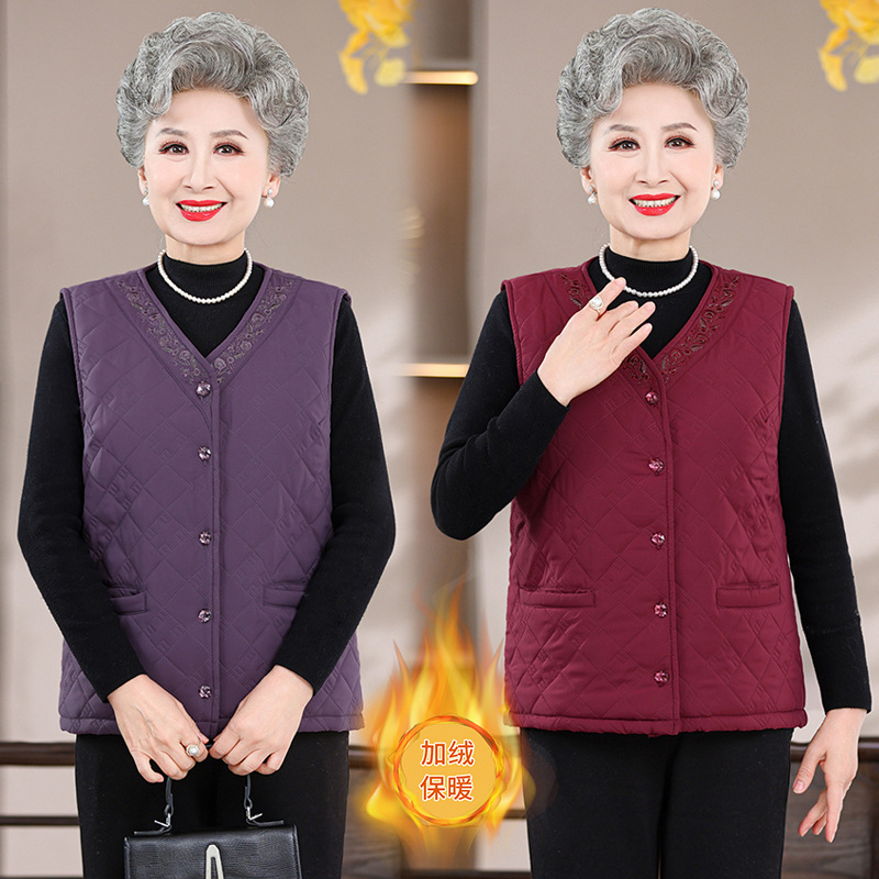 中老年人马甲女奶奶春秋坎肩妈妈冬装加绒加厚背心老太太保暖马夹