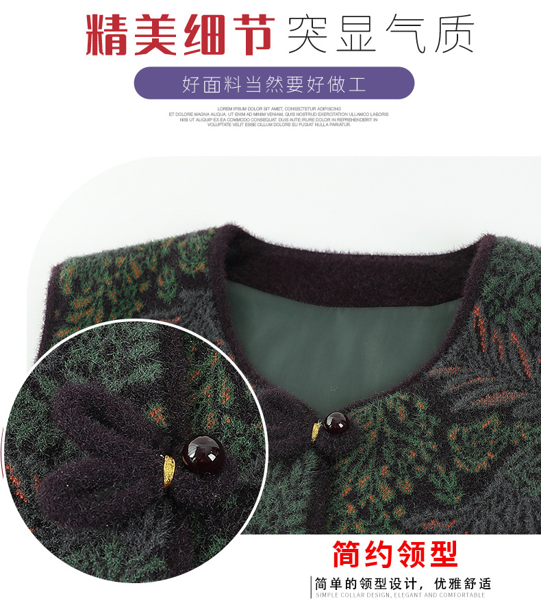 太ったおばあちゃんの秋冬服にベルベットをつけて、肩のお母さんの大きいサイズの保温ベストを厚くして、お年寄りの冬服の女性のベストを挟みます