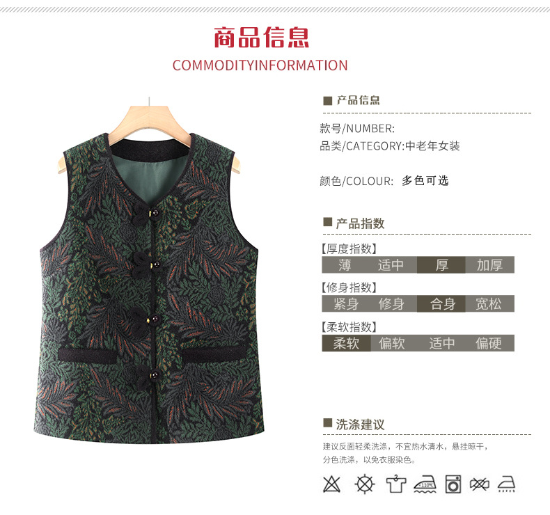 秋冬款中老年人秋装马甲女奶奶背心妈妈秋冬马夹老太太新中式外套
