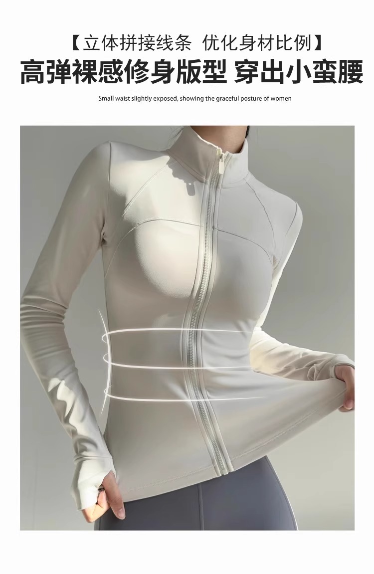 立领春季运动外套女薄绒收腰修身显瘦跑步训练瑜伽上衣弹力健身服