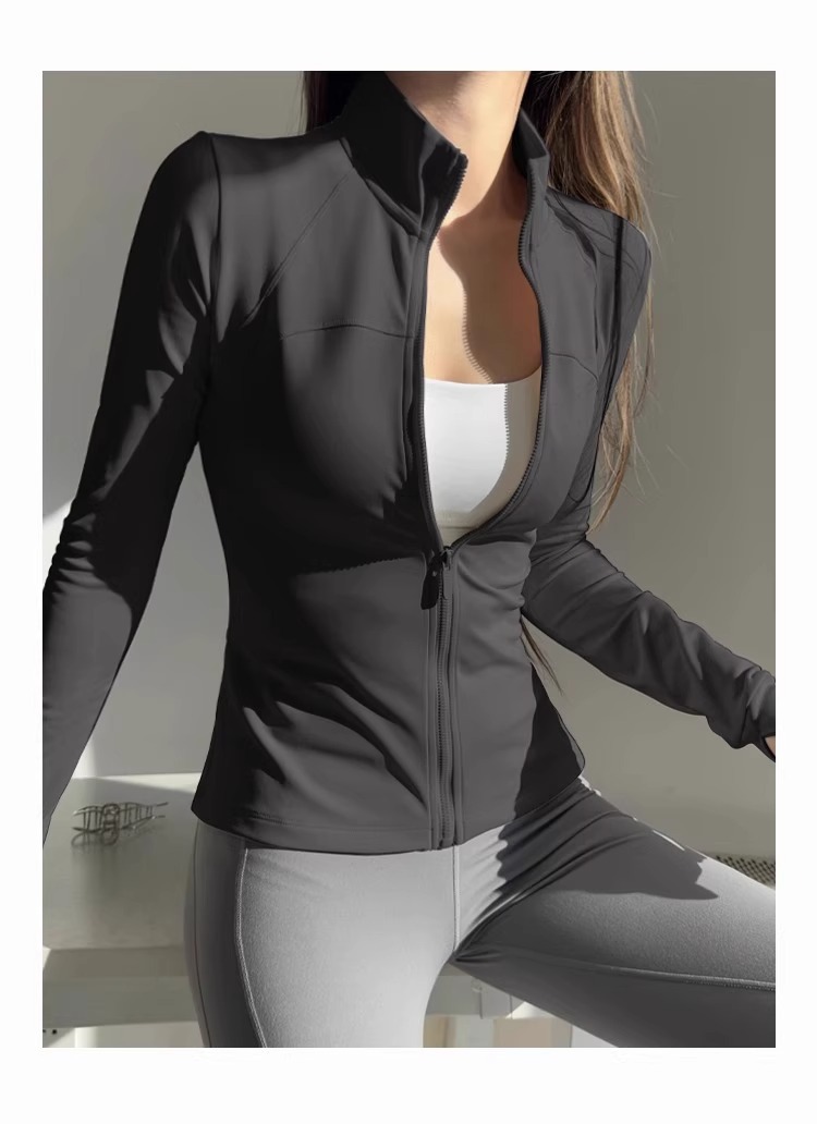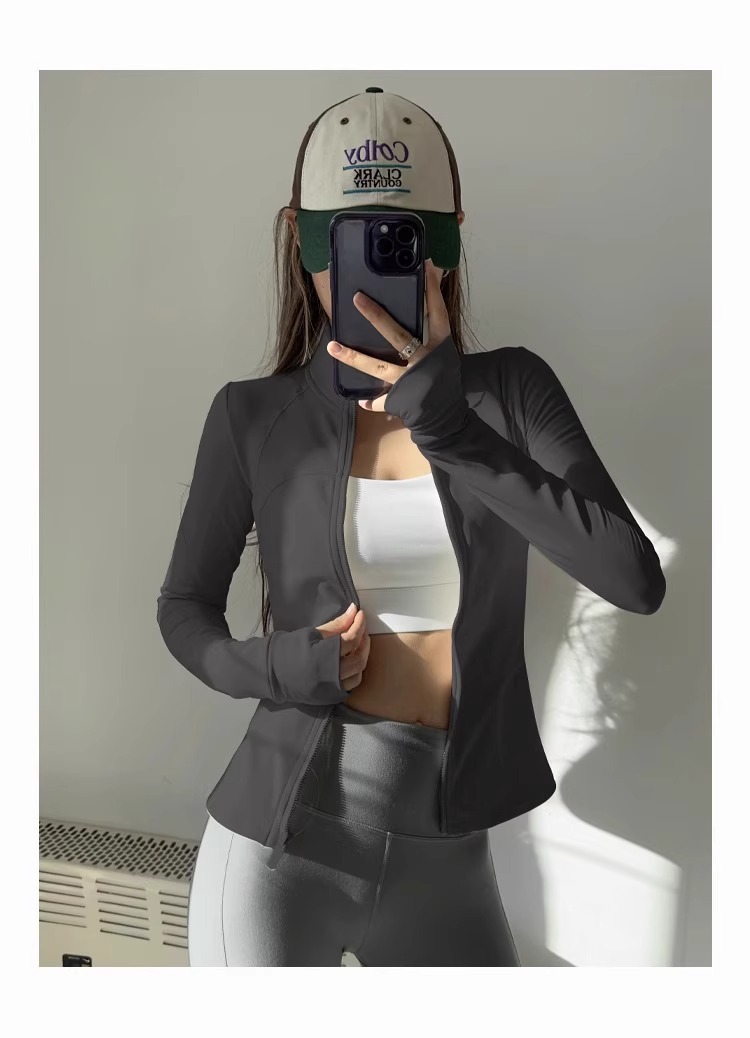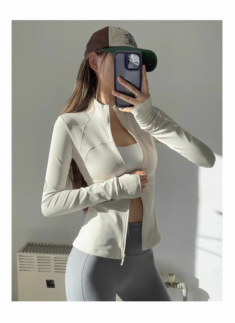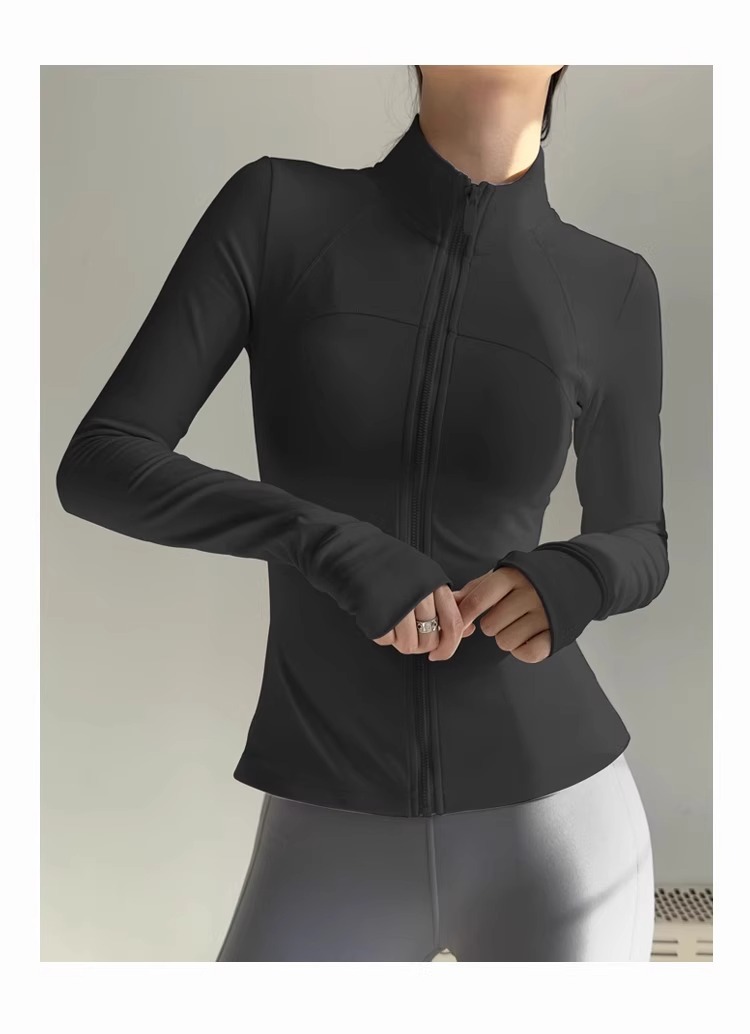 女性用スタンドカラーヨガジャケット、ランニングスポーツフィットネスウェア、長袖日焼け止め速乾ウェア、ルルと同じスタイルのヨガトップス